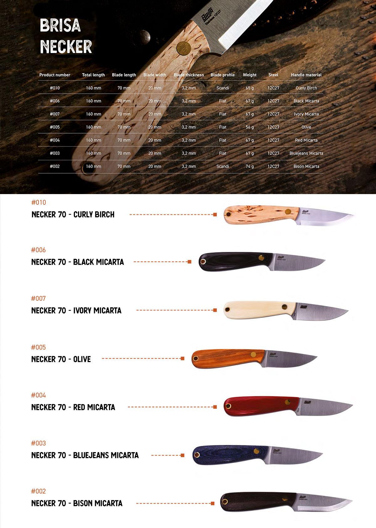 El Necker es uno de los cuchillos Brisa más populares. Diseñado como un cuchillo de cuello ligero, el modelo se ha ganado el amor de personas de todos los ámbitos de la vida. Un cuchillo muy versátil con diferentes materiales de mango o acabados de hoja.