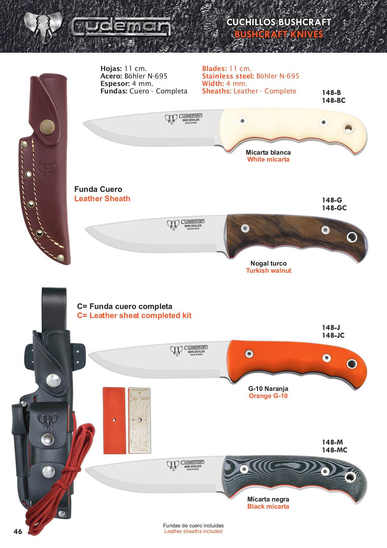 Cuchillos enterizos con una longitud de hoja de 11 cm. Espesor: 4 mm.