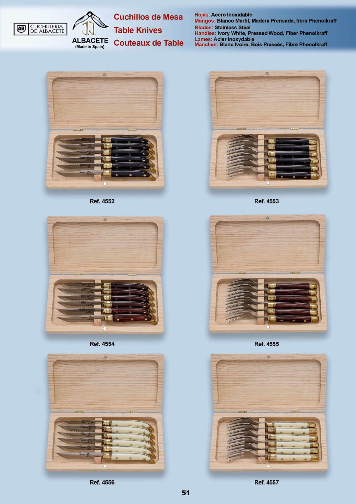 Juego de 6 cuchillos de mesa con mango de madera roja en estuche ...