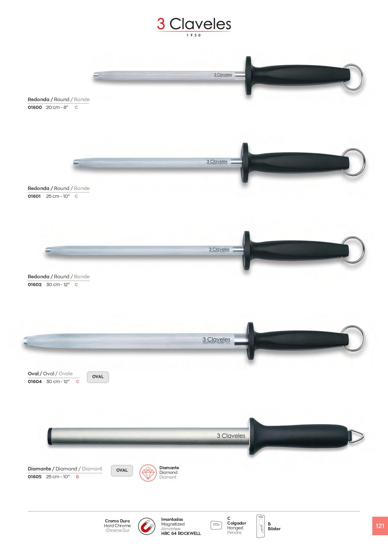 Chaira redonda de cromo duro 25 cm mango negro con gancho 3 Clave...