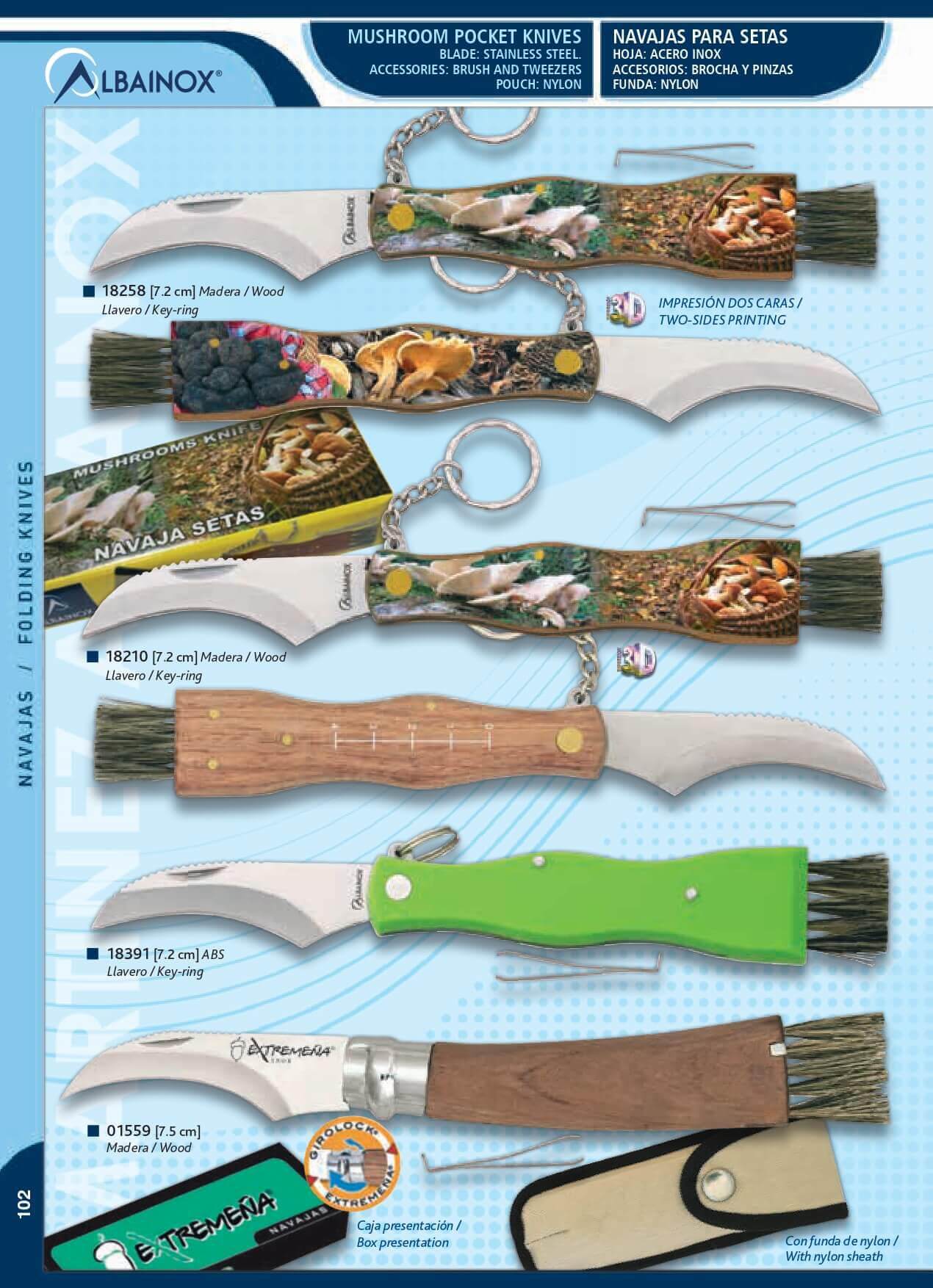 Navajas para setas con hoja de acero inoxidable, brocha y pinzas y funda de nylon