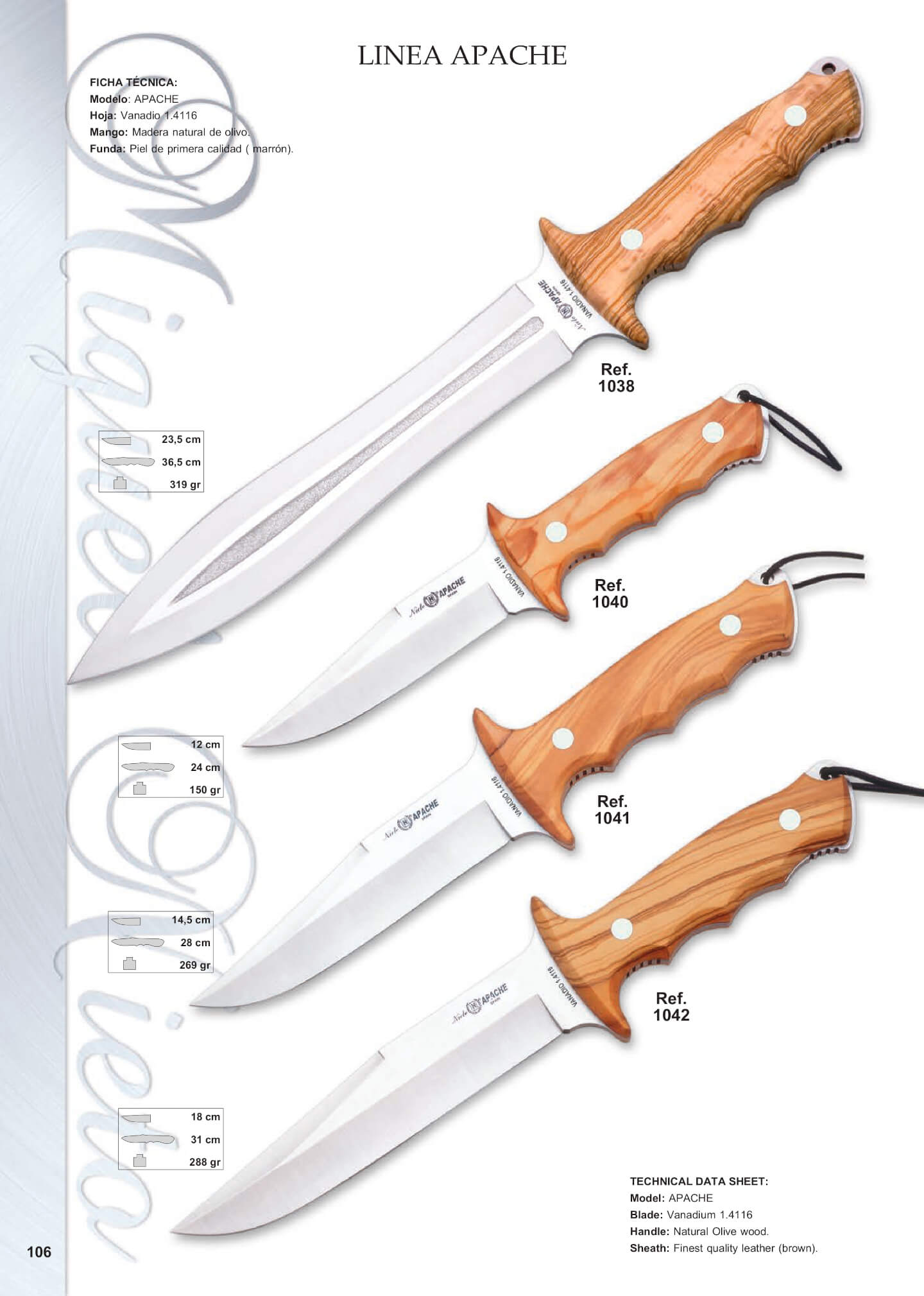 Longitud de hoja: 23.5 cm. Longitud total: 36.5 cm. Peso: 319 grs.