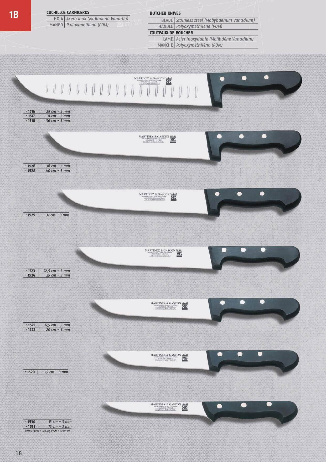 Hoja de acero inox. Mango de polipropileno. Grosor 3mm.