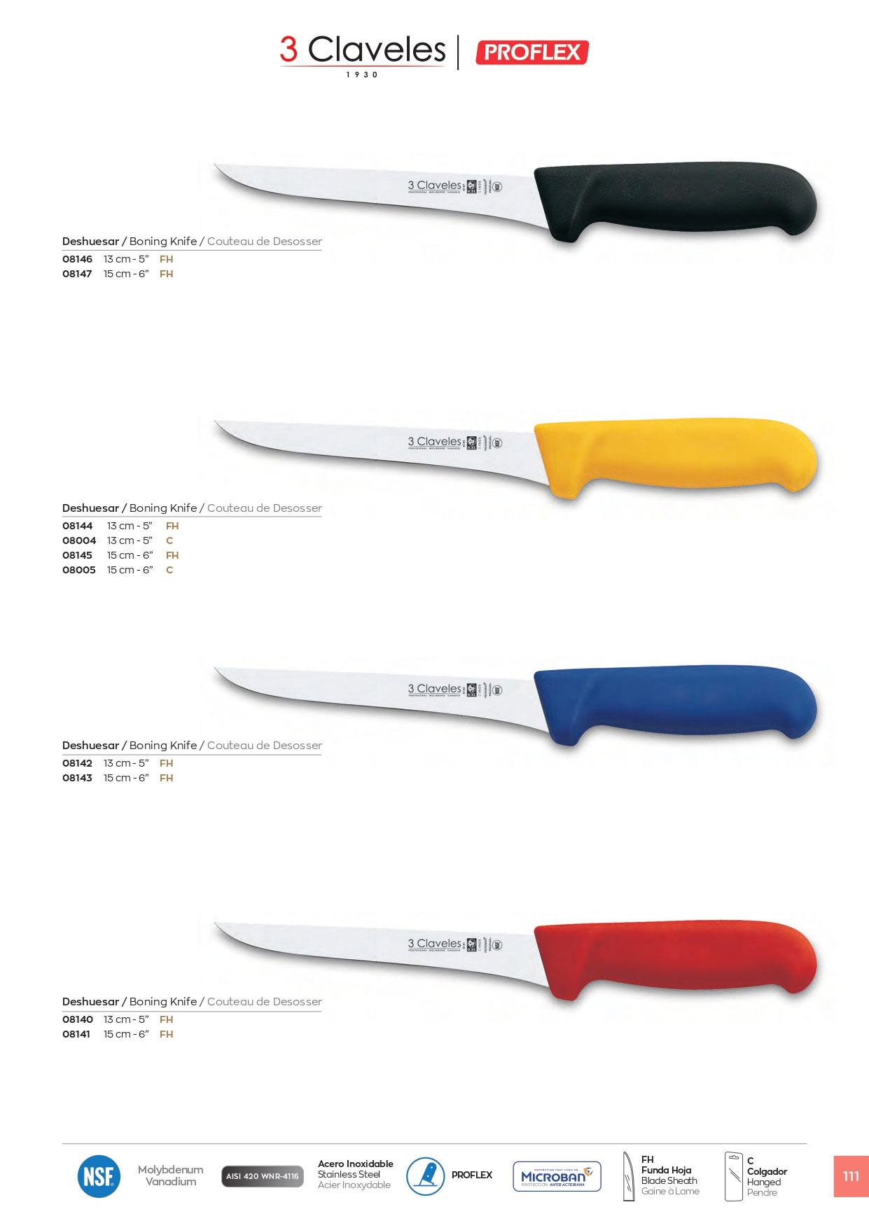 Cuchillos Profesionales Carnicero Deshuesar. Acero Inoxidable mango Proflex.