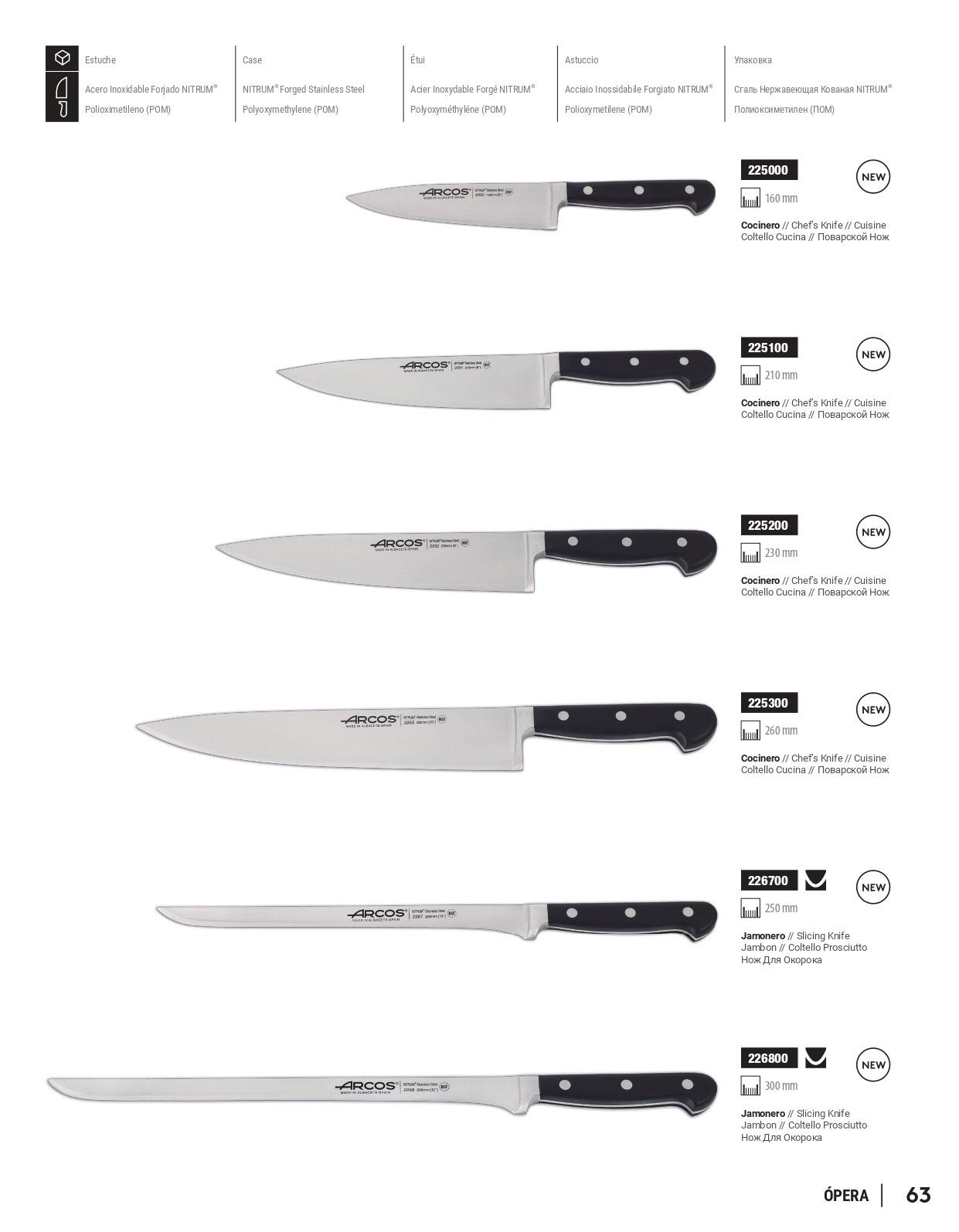 Cuchillos con hoja de acero inoxidable forjado NITRUM y mango de polioximetileno. Cuchillo cocinero y Cuchillo jamonero.