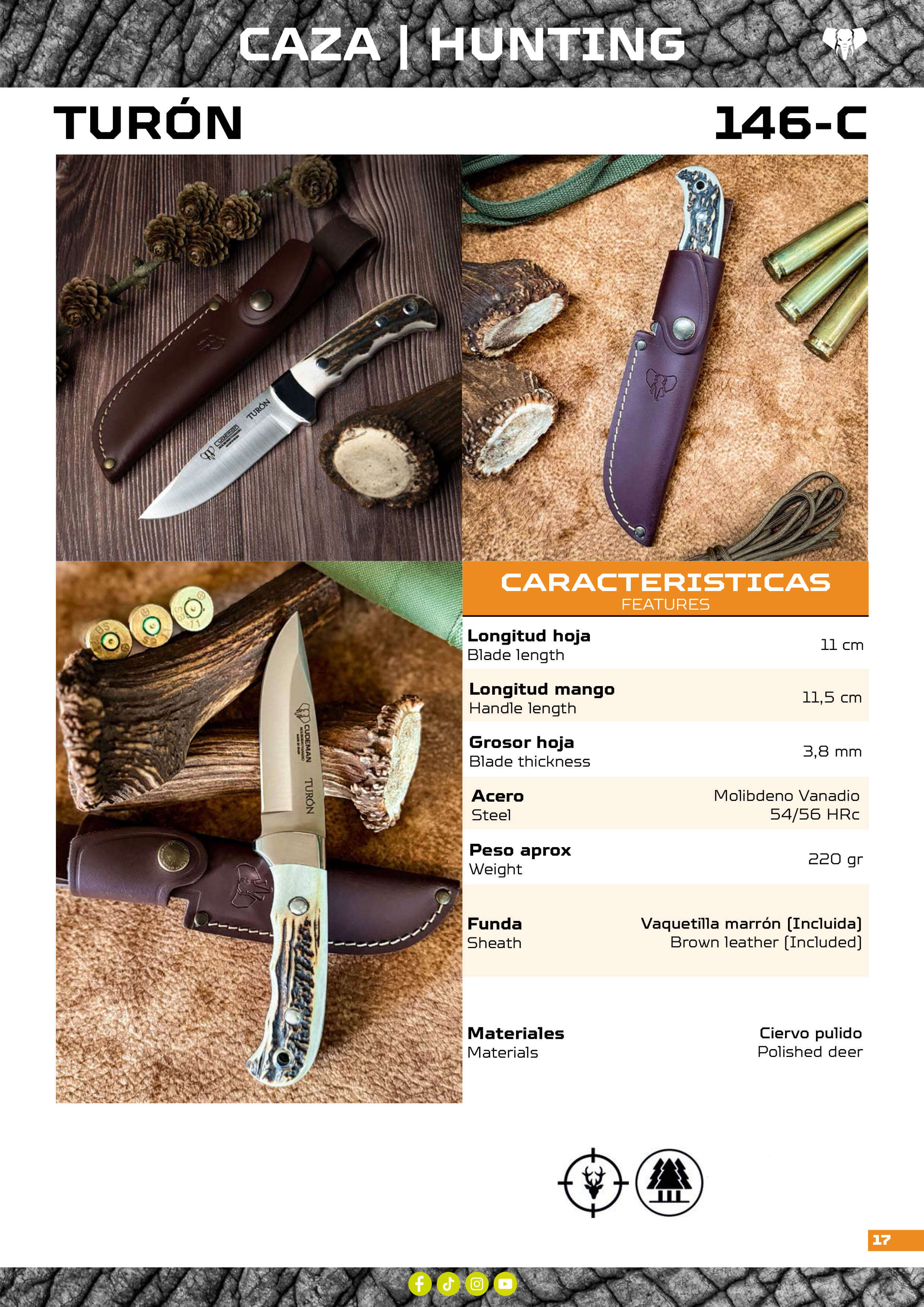 146-C cachas de asta de ciervo. Peso del cuchillo: 194 gr.
