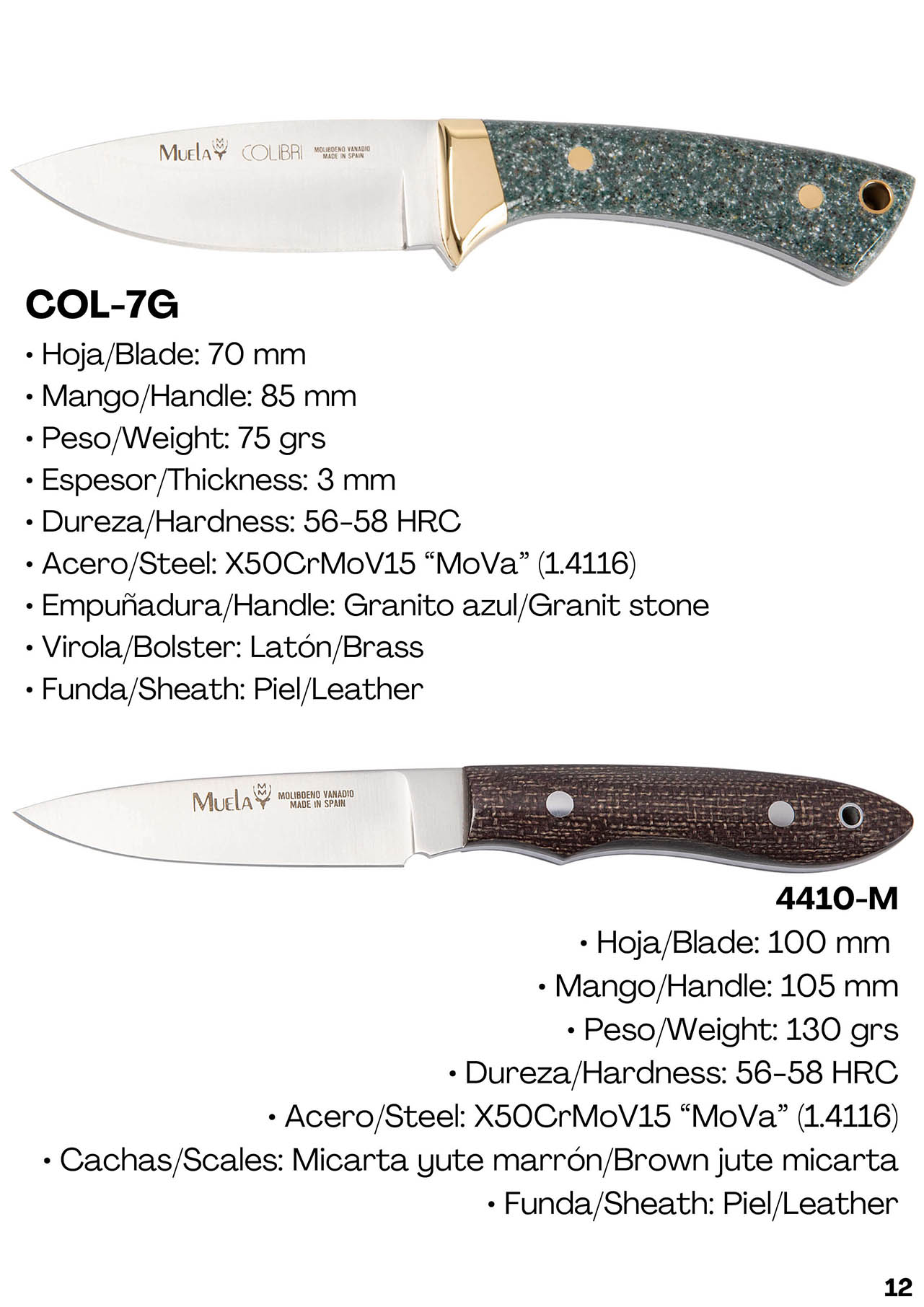 Cuchillos de caza pequeños con hojas de acero Molibdeno Vanadio.