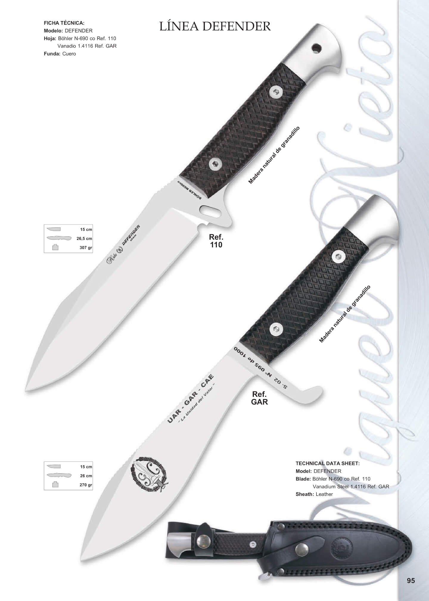 Cuchillos Nieto Defender.Cuchillos militares enterizos con una longitud de hoja de 15 cm y funda de cuero negro.