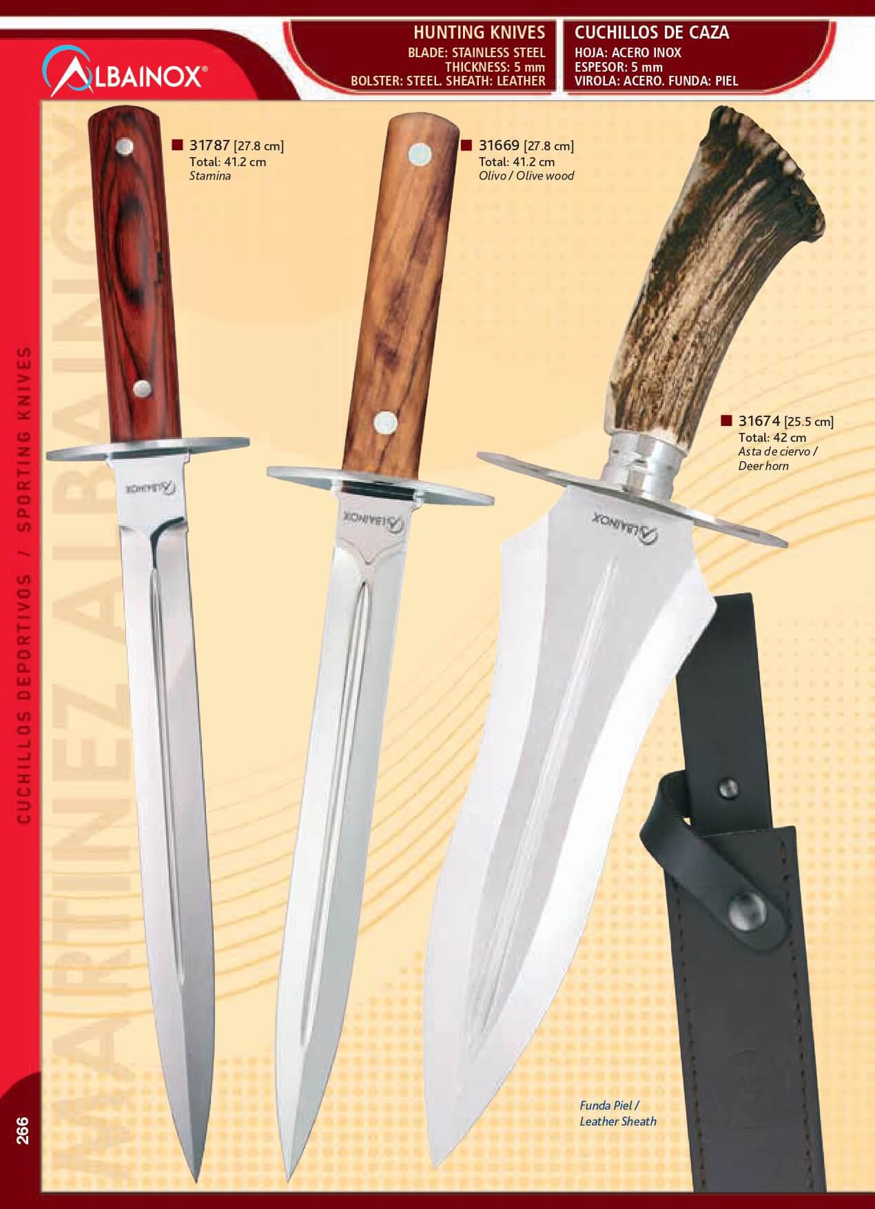 Hoja de acero inox.440. Espesor 5mm, funda de piel.