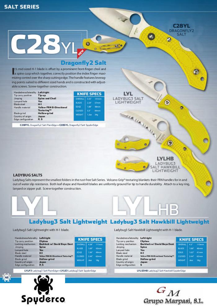 Los cuchillos Spyderco Ladybug3 Salt son los mas cuchillos plegables mas pequemos de la serie SALT libre de oxido. LYLP3 - PlainEdge. LYLS3 - SpyderEdge. LYLS3HB - Hawkbill. SpyderEdge.