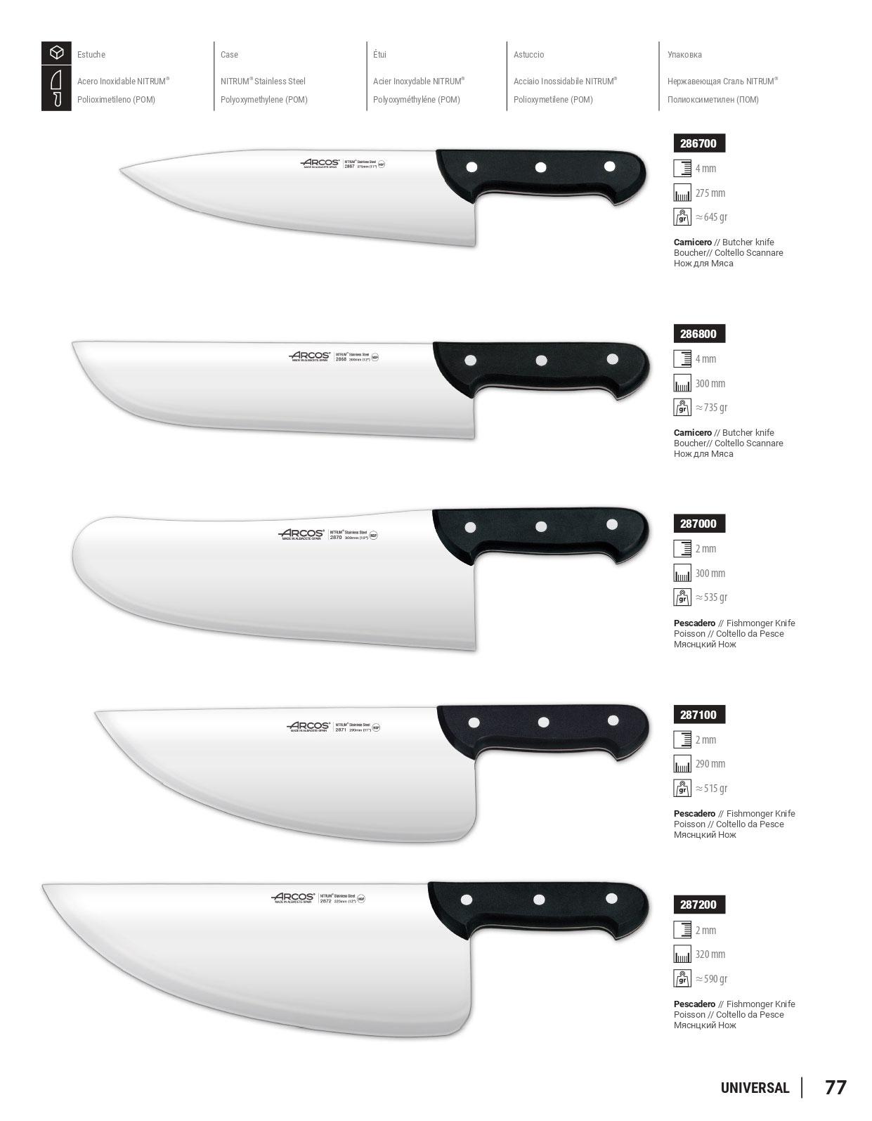 Cuchillos profesionales. Carnicero y Pescadero. Hoja de acero inoxidable NITRUM. Mango POM.