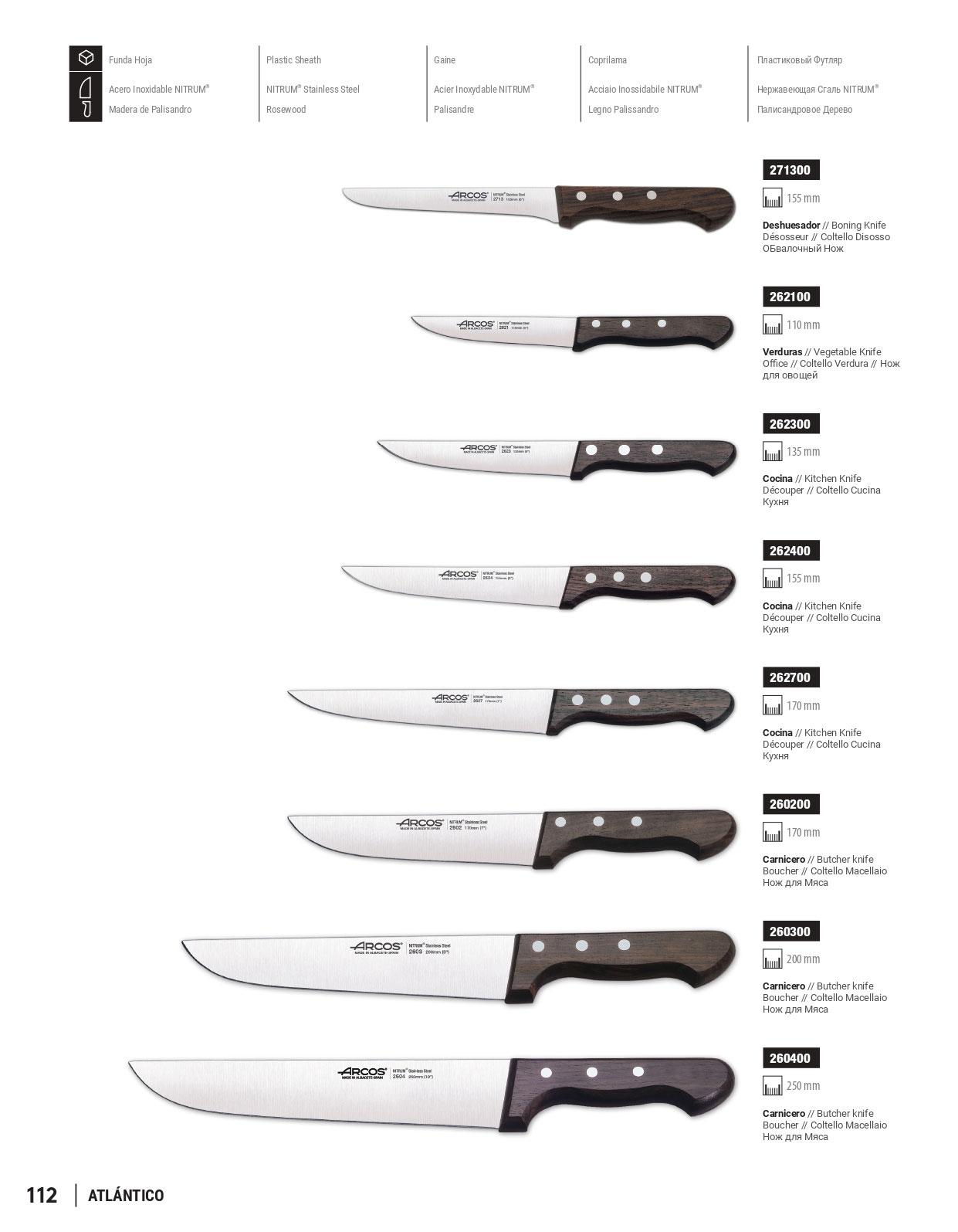 Cuchillos profesionales de cocinero, hoja de acero inoxidable NITRUM. Mango de madera de Palisandro.