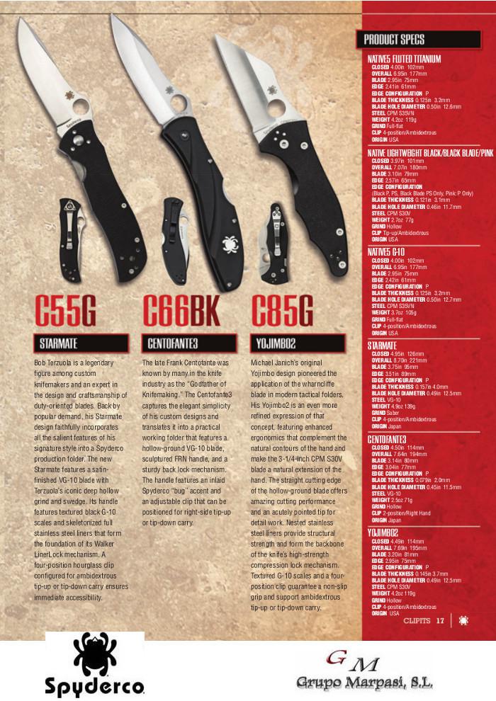 C55G - Cuchillo táctico plegable Spyderco Starmate.C66BK - Cuchillo táctico plegable Spyderco Centfante3.C85G - Cuchillo táctico plegable Spyderco Yojimbo2.
