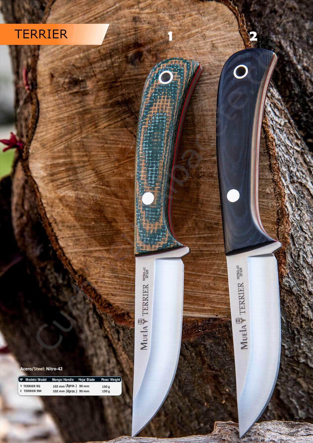 Cuchillos de caza de la fábrica Muela fabricado en acero NITRO-42*. Hoja enteriza de 9 cm y 3,5 mm de grosor.