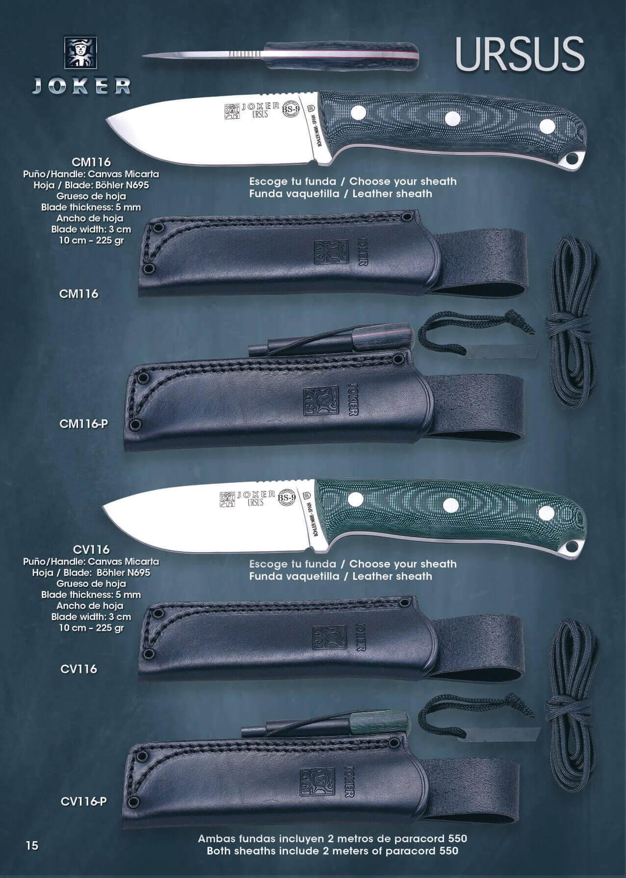 Cuchillos BS9 URSUS Joker con hoja de acero Böhler N695.