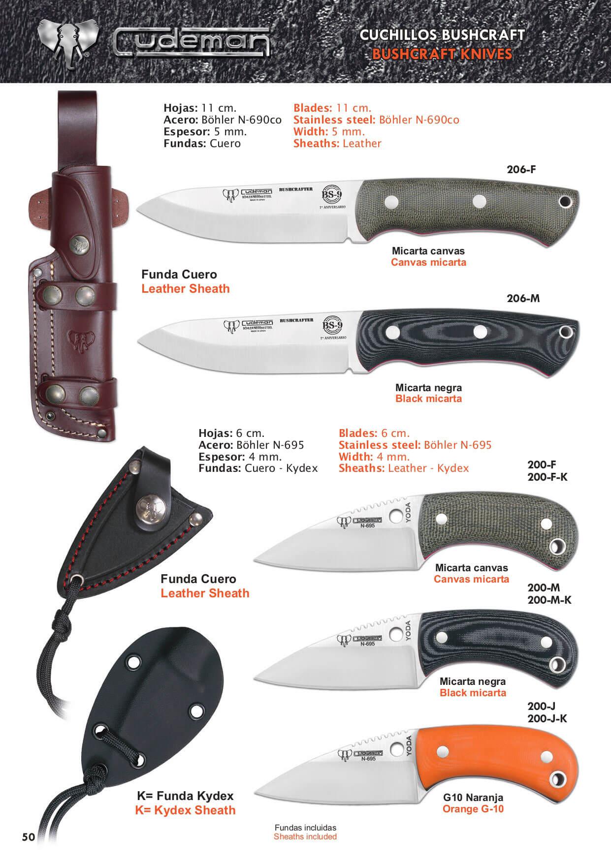 Cuchillos Yoda de Cudeman, con hoja de 6 cm de longitud de acero BÖHLER N-695 con amolado plano y 4 mm de grosor. Lontitud total de 11,8 cm