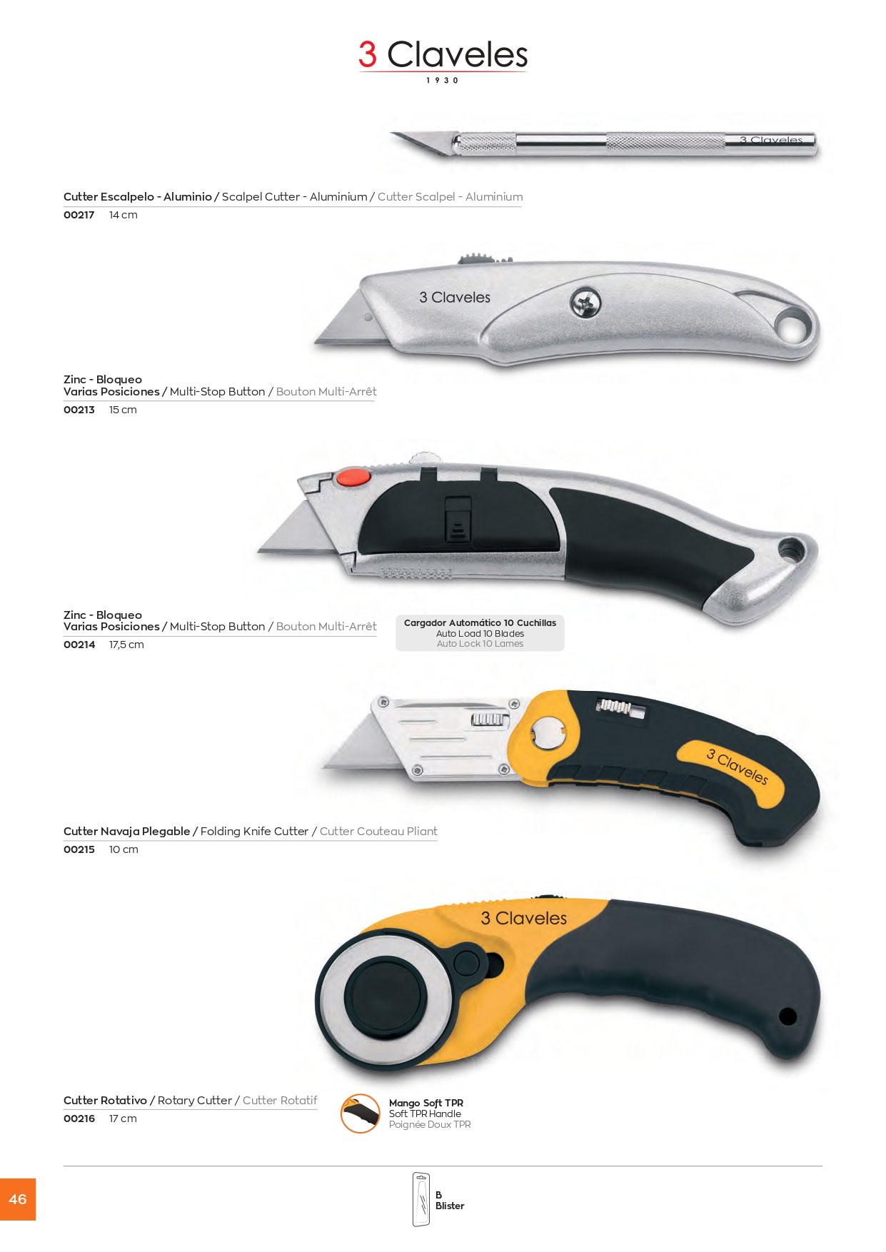 Cutter retráctil con cargador automático y mango de zinc 3 Clavel...