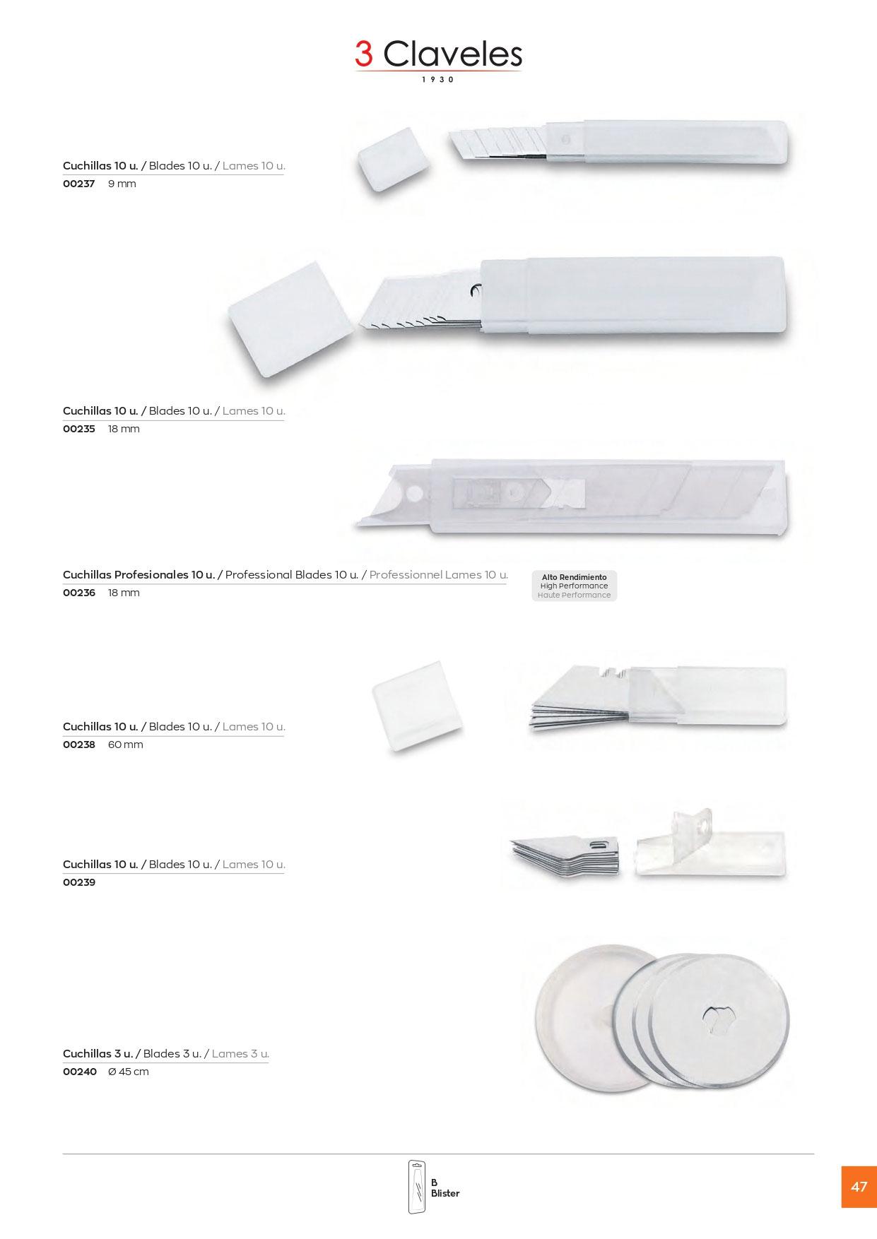 Pack de 10 cuchillas para cutter de 60 mm 3 Claveles