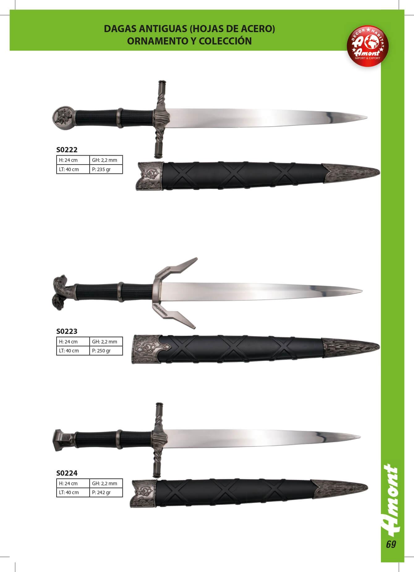 Dagas antiguas con hoja de acero para ornamento y colección.