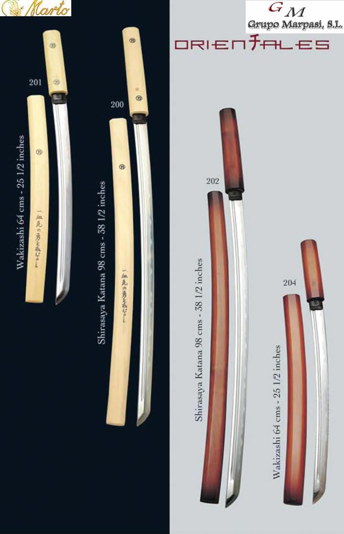 Espadas Orientales200 Shirasaya Katana. 201 Wakizashi. 202 Shirasaya Katana. 204 Wakizashi.