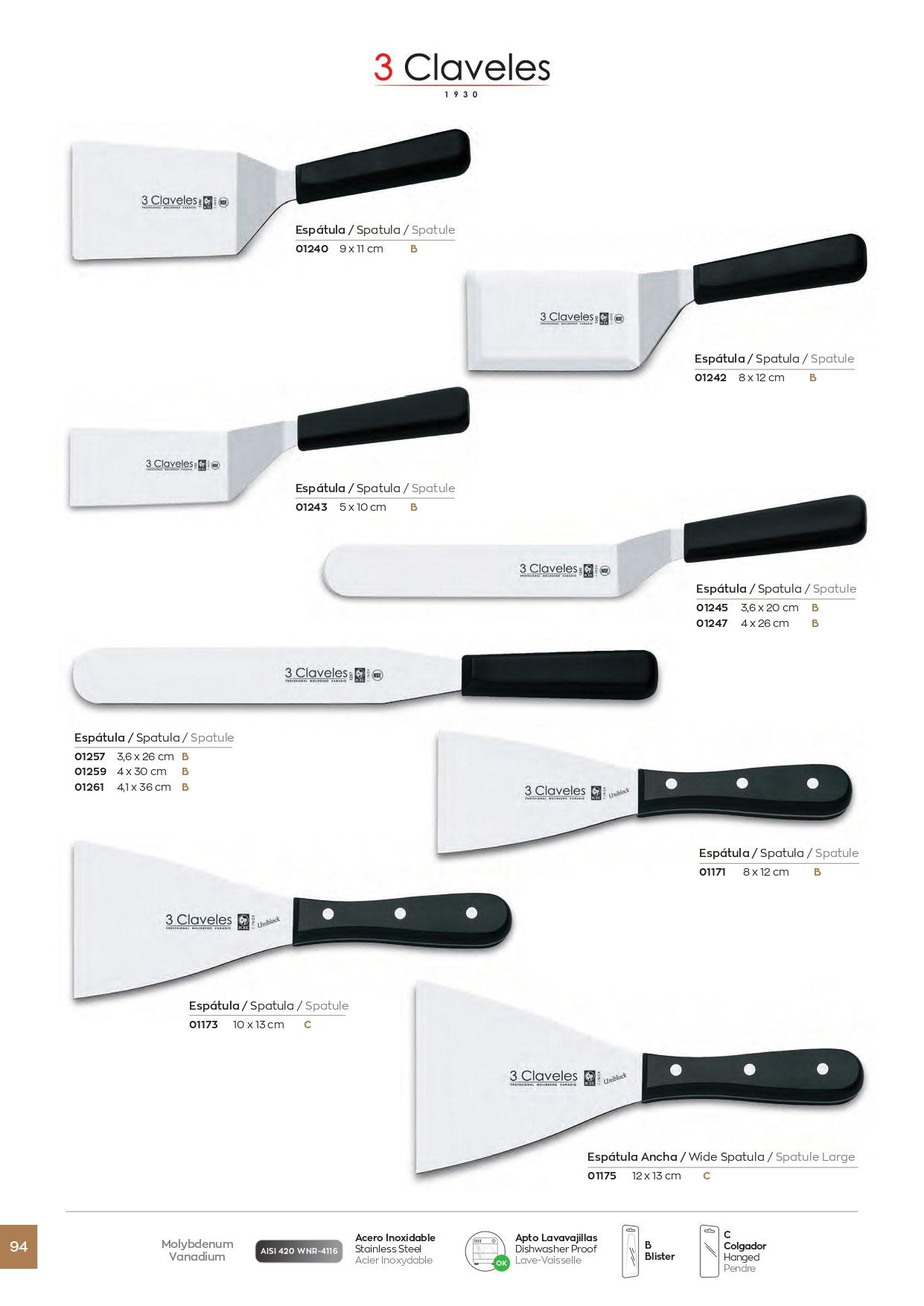 Espatulas de Cocina profesionales para hostelería, hoja de acero inoxidable y mango de polipropileno.