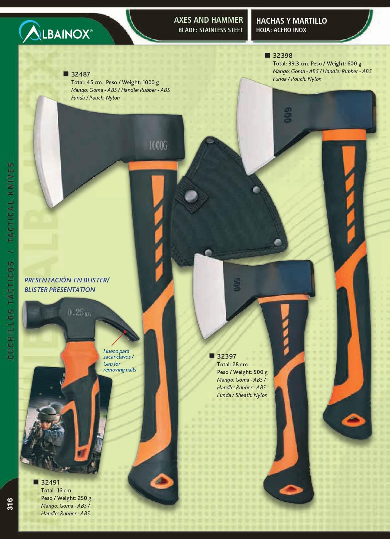Hacha negra y naranja de 39.30cm Albainox