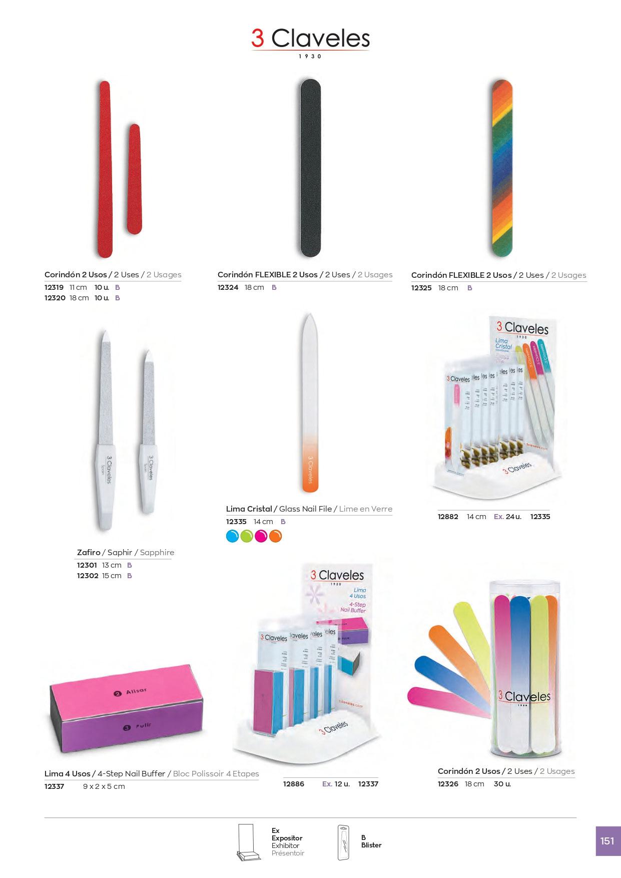 Expositor 12 limas de manicura 4 usos 3 Claveles en Blister