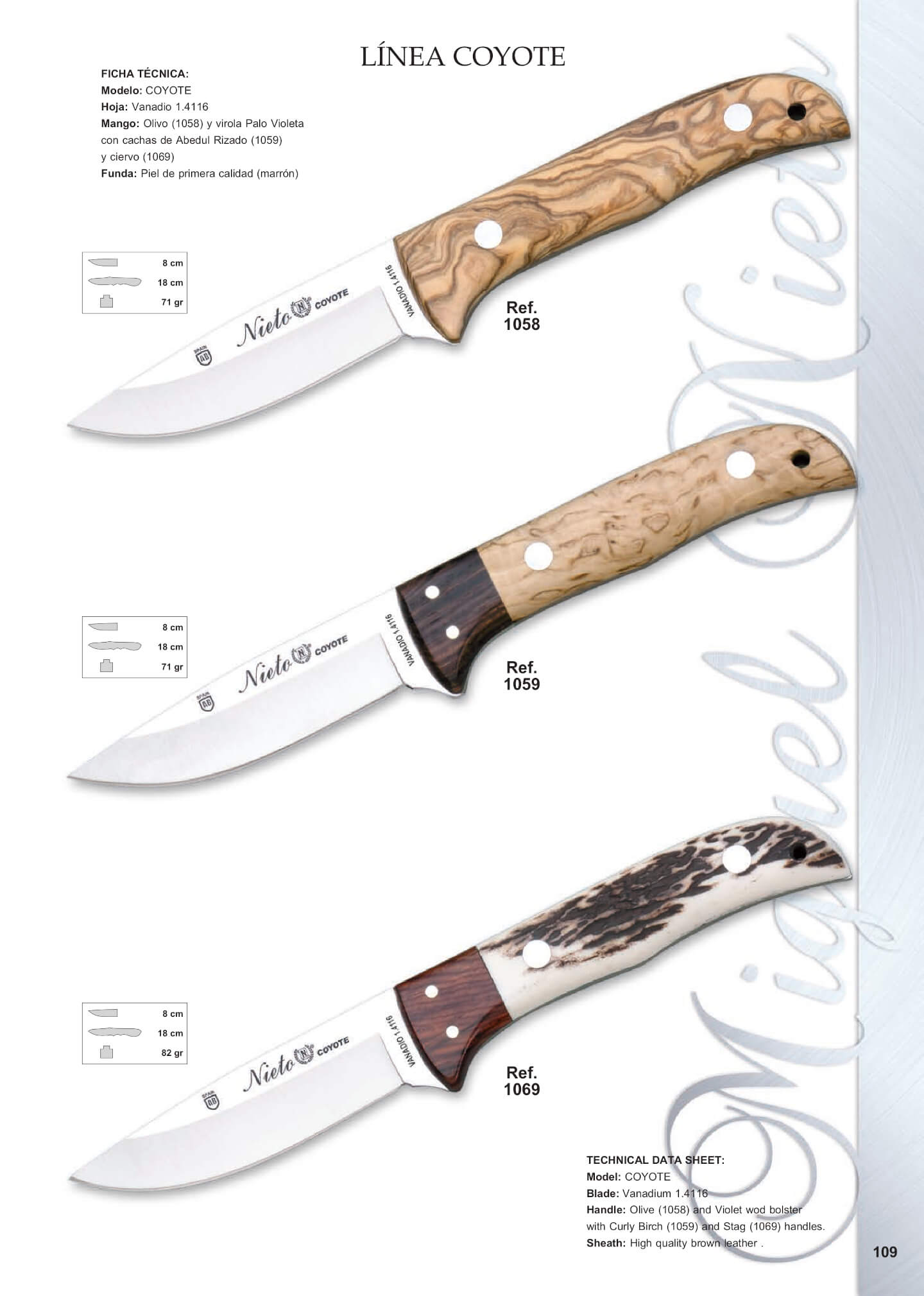 Mango: Virola palo violeta y con cachas de abedul rizado.