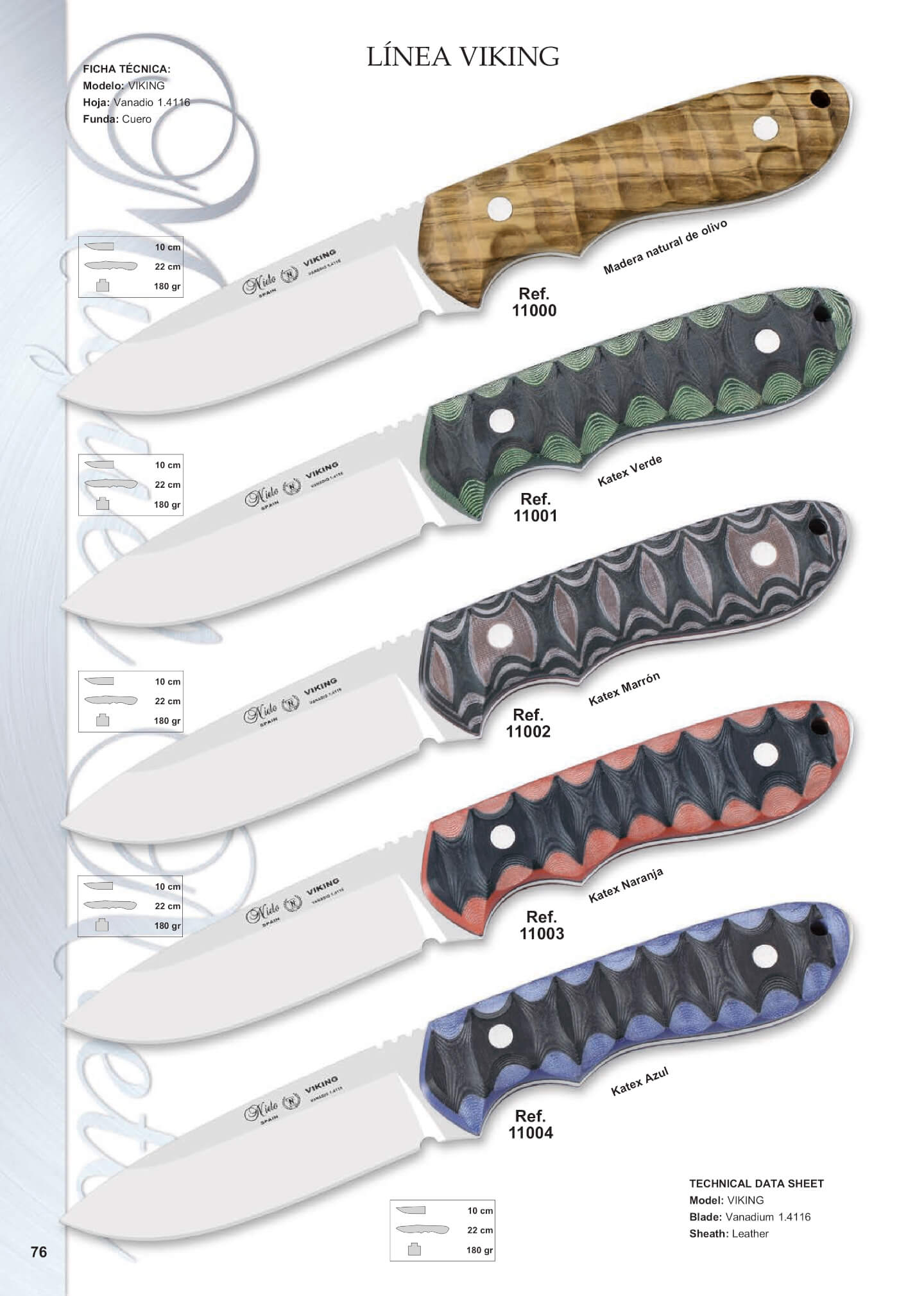 Longitud de hoja: 10 cms. Longitud total: 22 cms. Peso: 130 grs.
