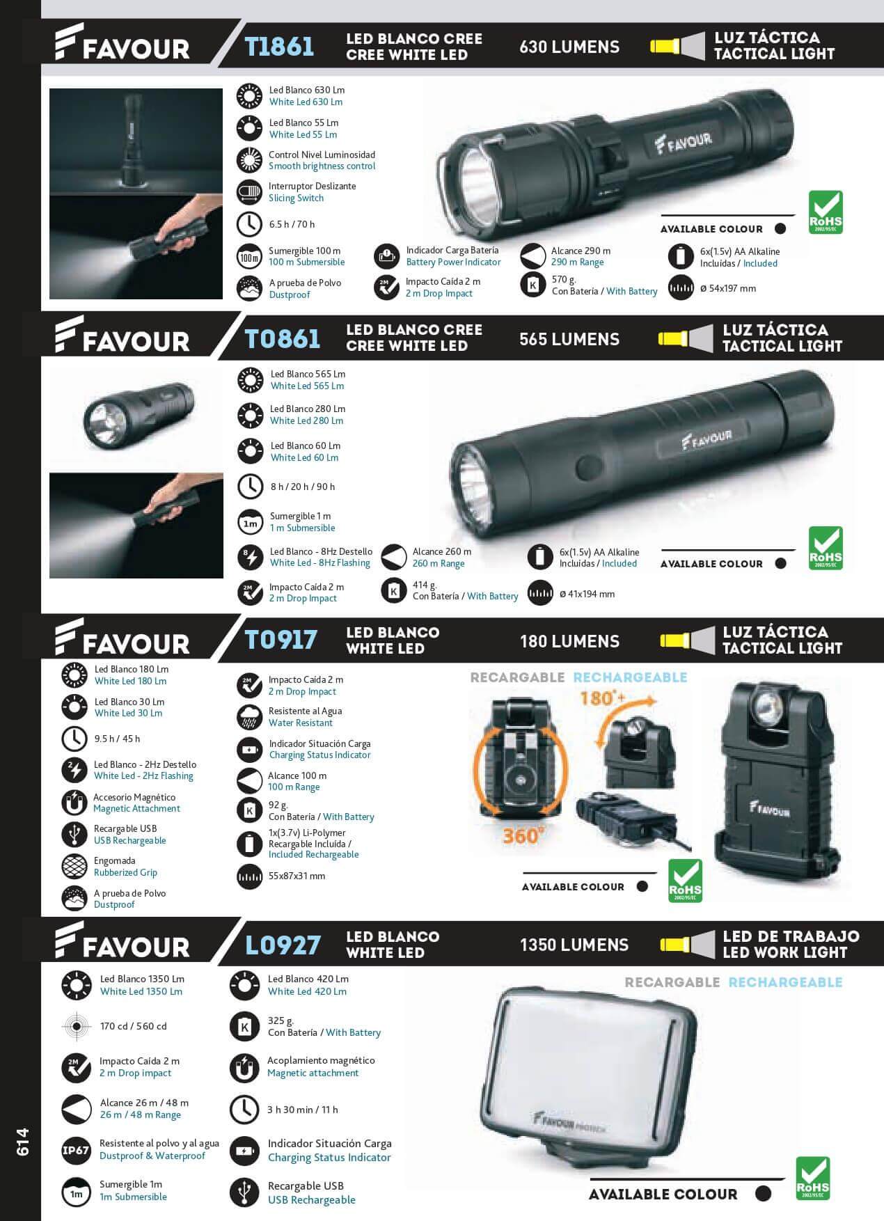 Foco FAVOUR recargable por USB 1350 lumens resistente al polvo y ...