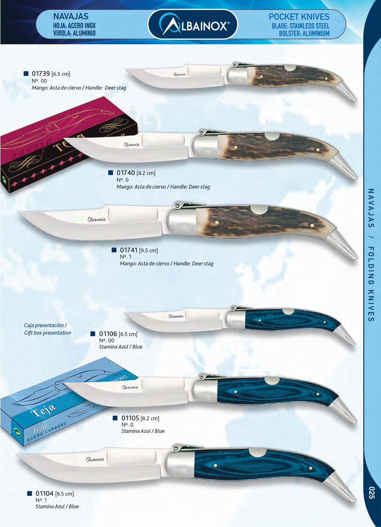 Navaja clásica con mango de estamina azul y hoja de 8.2 cm