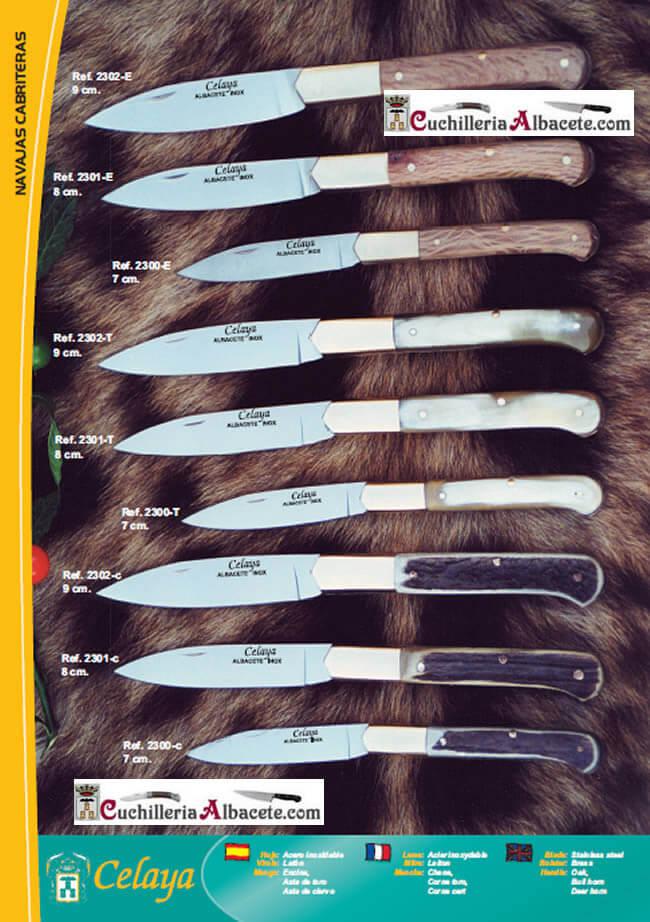 2302-E, 2301-E, 2300-E Navaja Cabritera mango de madera de encina.
