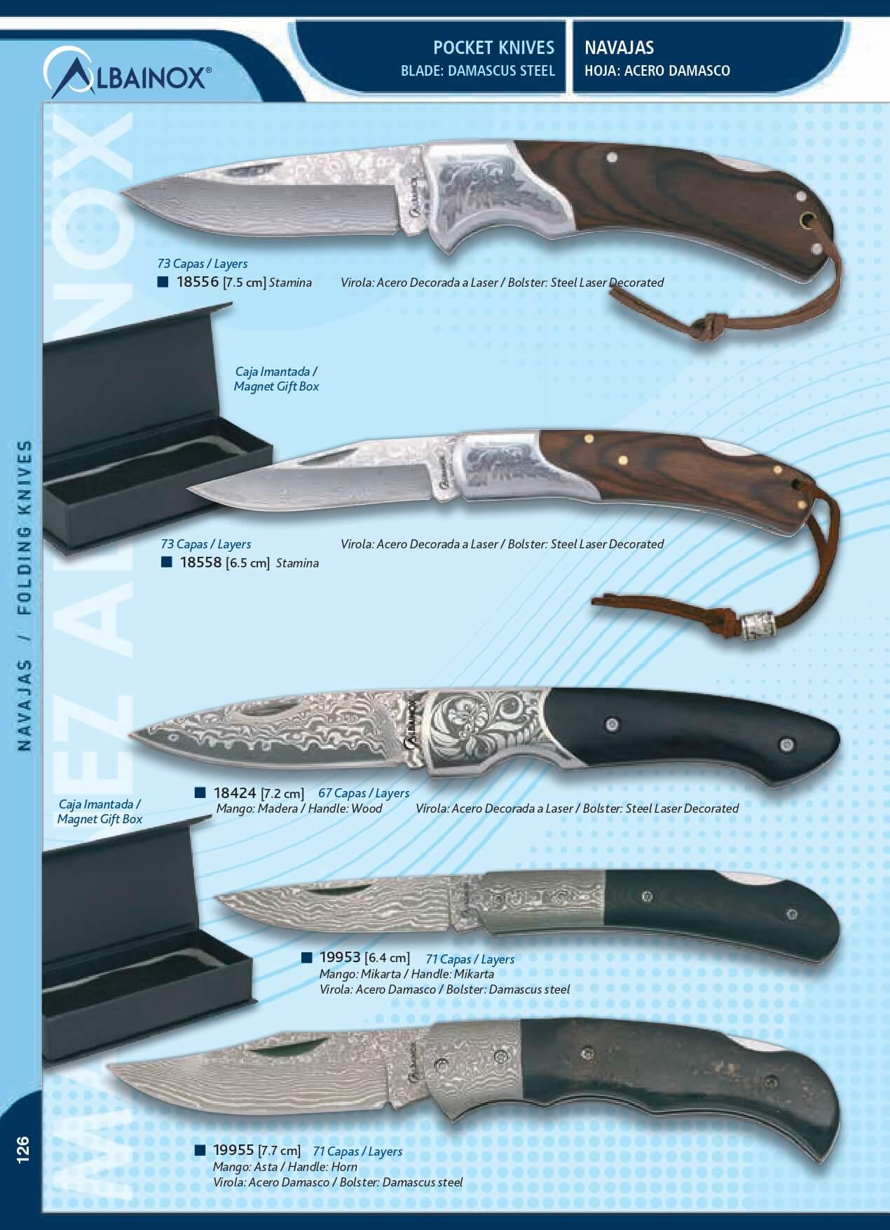 Navaja Damasco Albainox con virola de acero decorada a láser y ho...