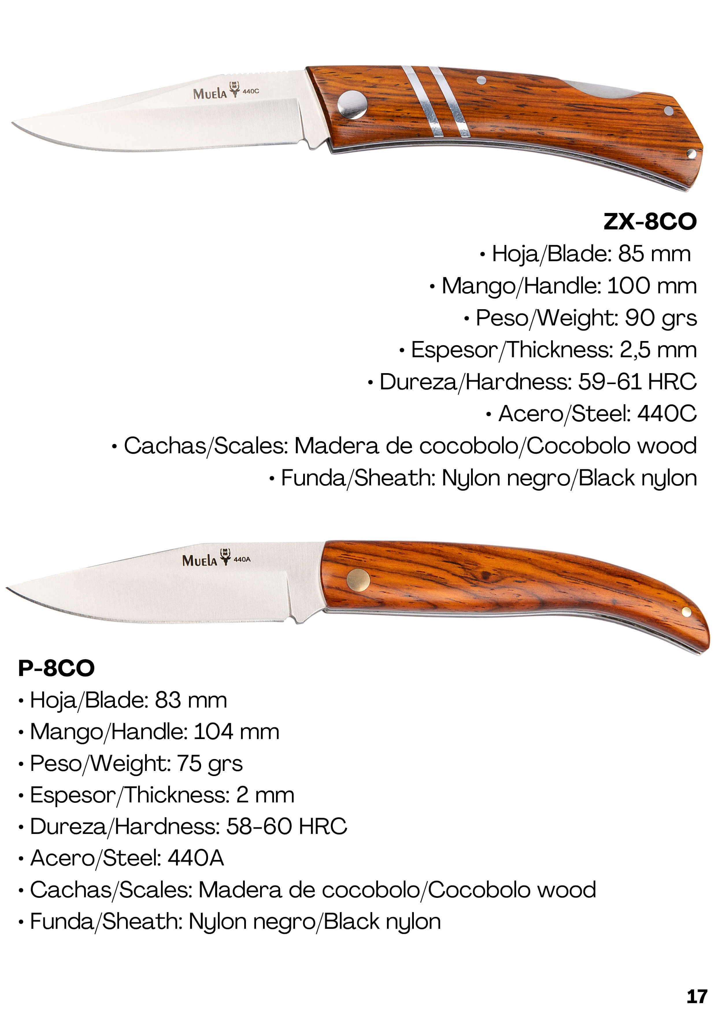 Navaja de caza Muela ZX-8CO con mango de madera de cocobolo y hoj...