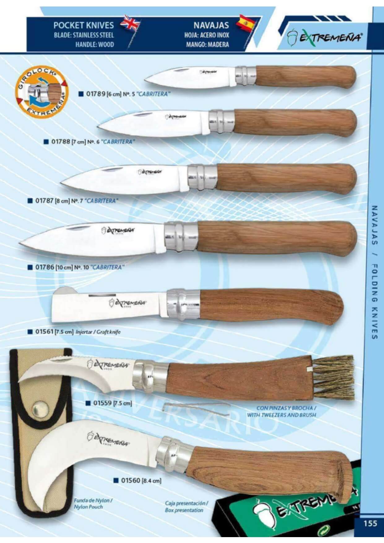 Navaja corta setas con mango de madera con bloqueo girolock y hoj...