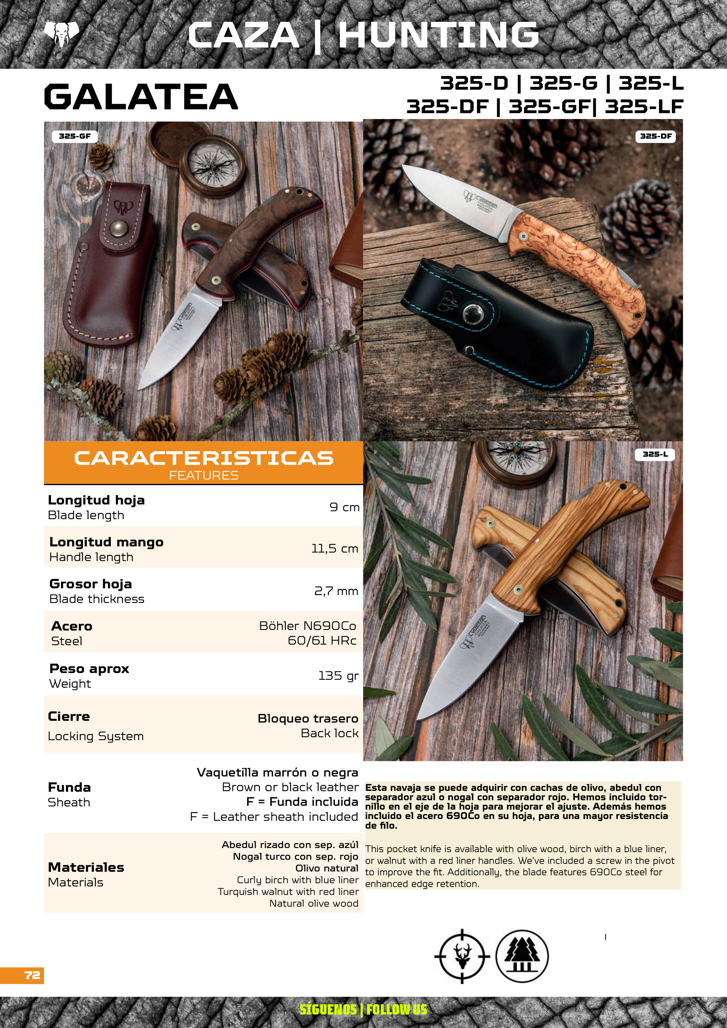Navajas de caza con hoja de acero Molibdeno Vanadio