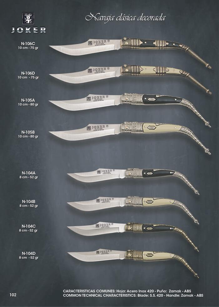 Navaja clásica bandolero con puño de zamak blanco y dorado decora...