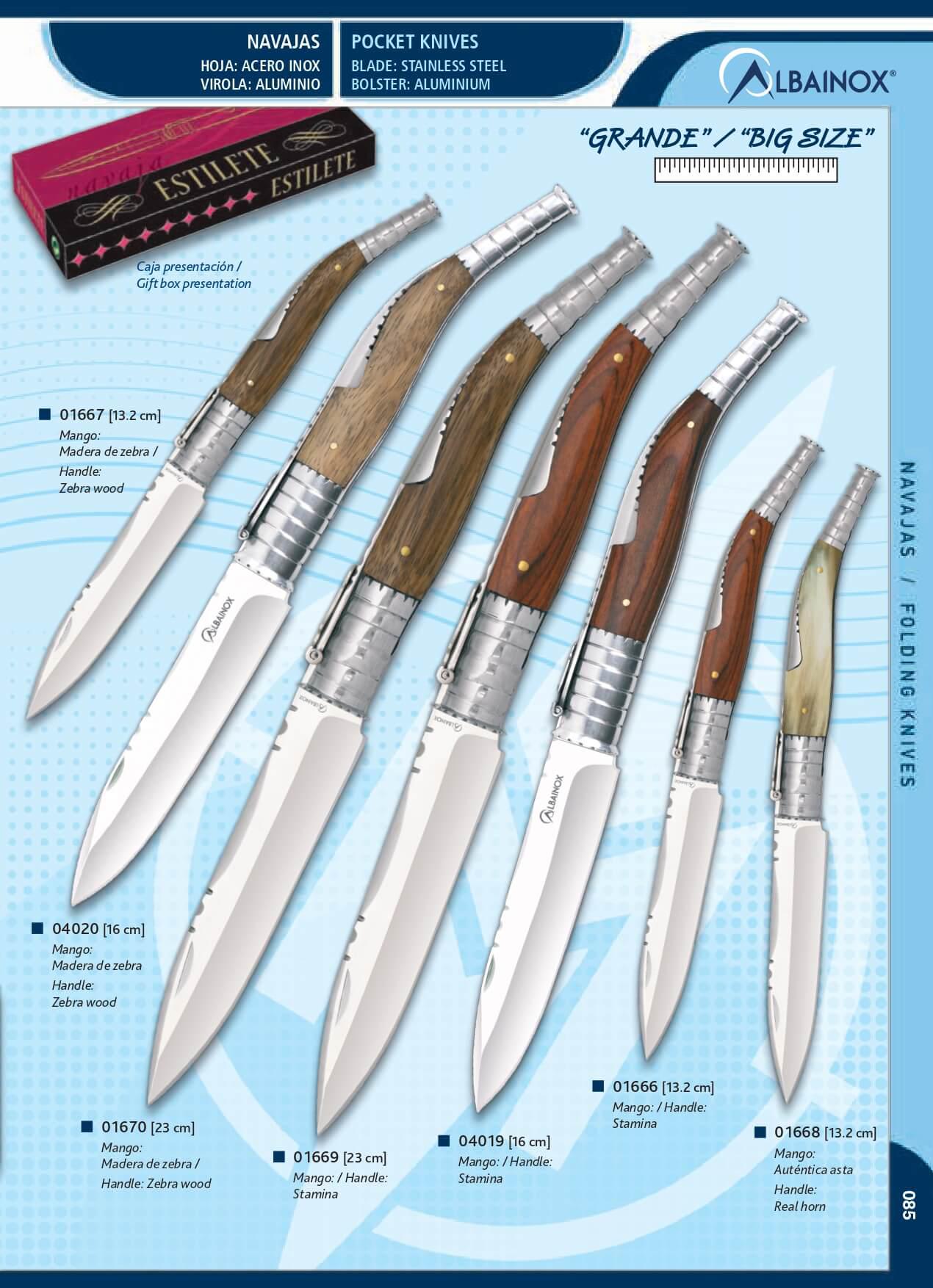 Navajas clásicas de gran tamaño. Hoja de acero inoxidable.