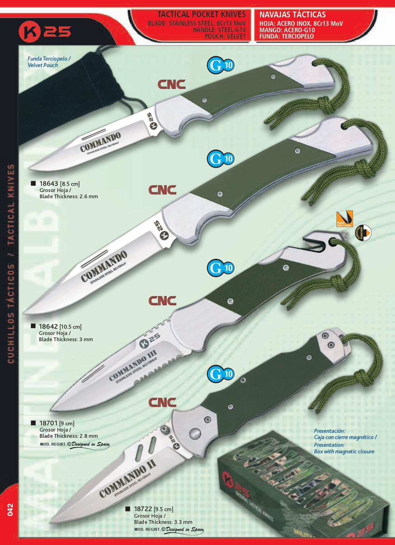 18643: Navaja Táctica COMMANDO, hoja de 8.50 cm, y mango de Acero y G10 verde