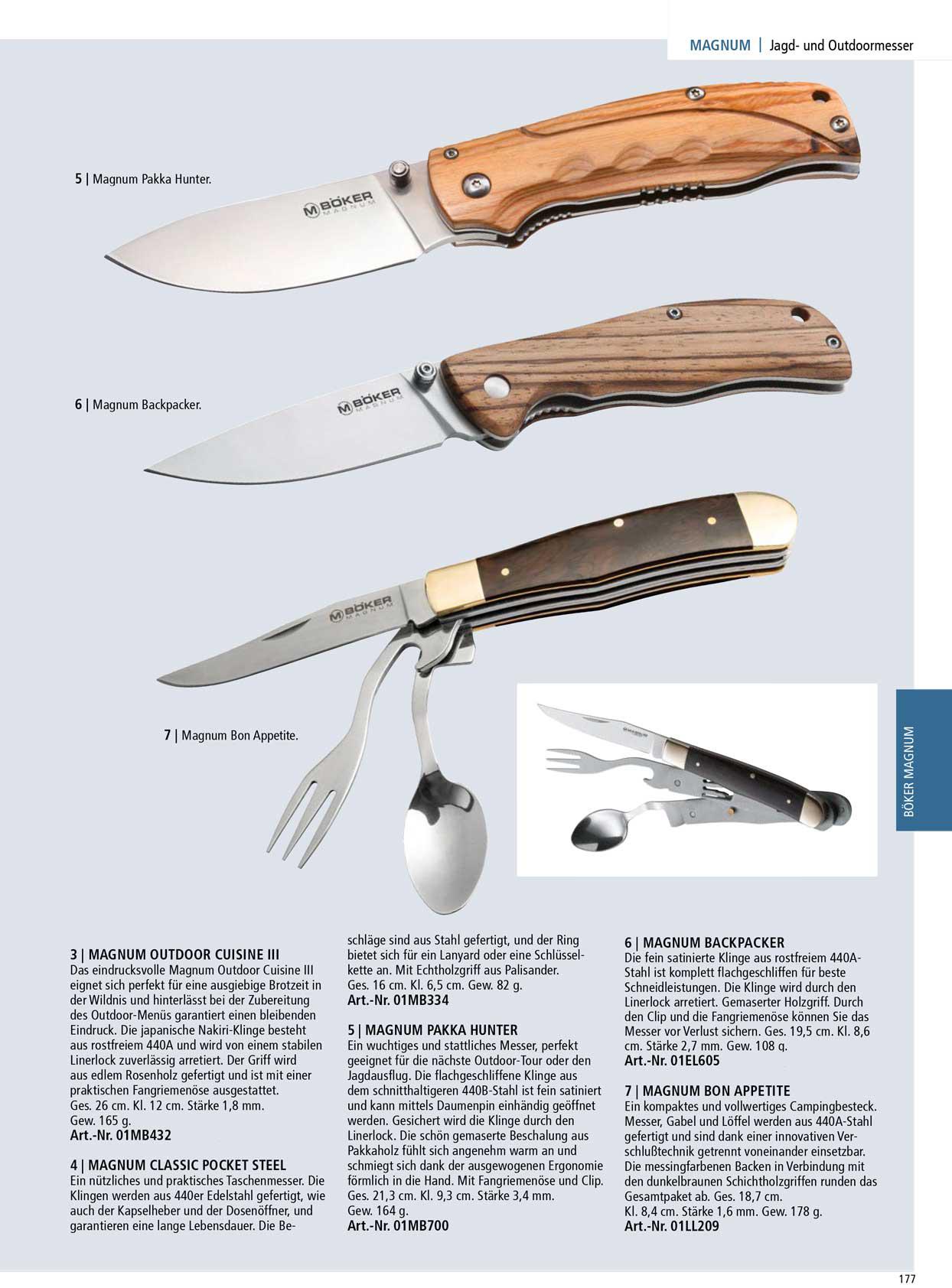 Hoja de acero inoxidable 440, con el mango de madera. Incl. Bail y clip de oro. Total. 19,7 cm. Hoja. 8,2 cm. Grosor 2.7 mm. , peso. 105 g.