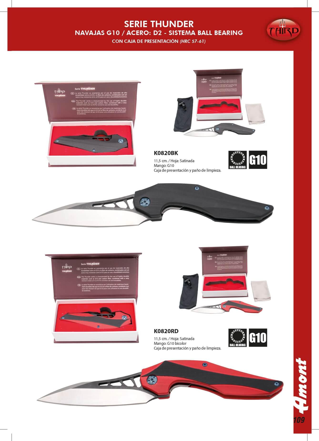 Navaja Asistida Serie Thunder, navaja con mango de G10 y tornillería bañada en titanio azul. Hoja de Acero D2 (HRc 57-61) de 11.5 cm acabado "Two Tone" todo realizado en máquina CNC. Sistema de apertura "Ball Bearing" apertura por rodamiento de bola (no impulsado por muelle). Grosor de Hoja: 3.95 mm. Cm de corte: 10.5 cm. Longitud de mango: 12.2 cm. Longitud total: 23.2 cm. Peso: 150 gr. Con clip. Incluye funda de tela para la navaja junto con pañuelo de limpieza. Caja de presentación.