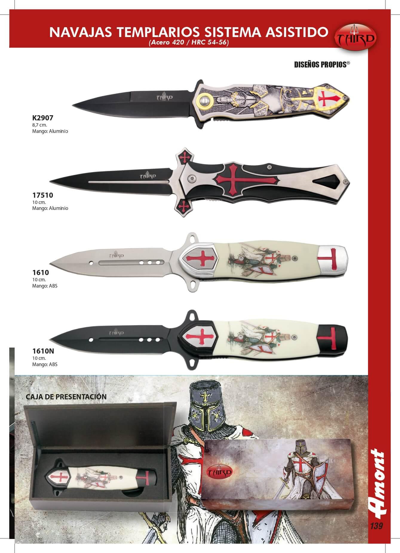 Navajas de Templarios con sistema asistido y hoja de acero 420 de dureza HRC 54-56