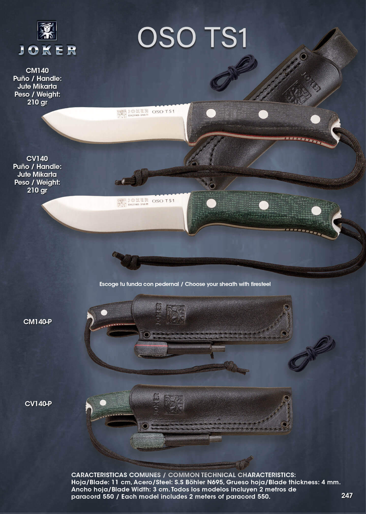 Hoja enteriza de acero Böhler N695 de 11 cm. Mango de micarta y funda de cuero negro.