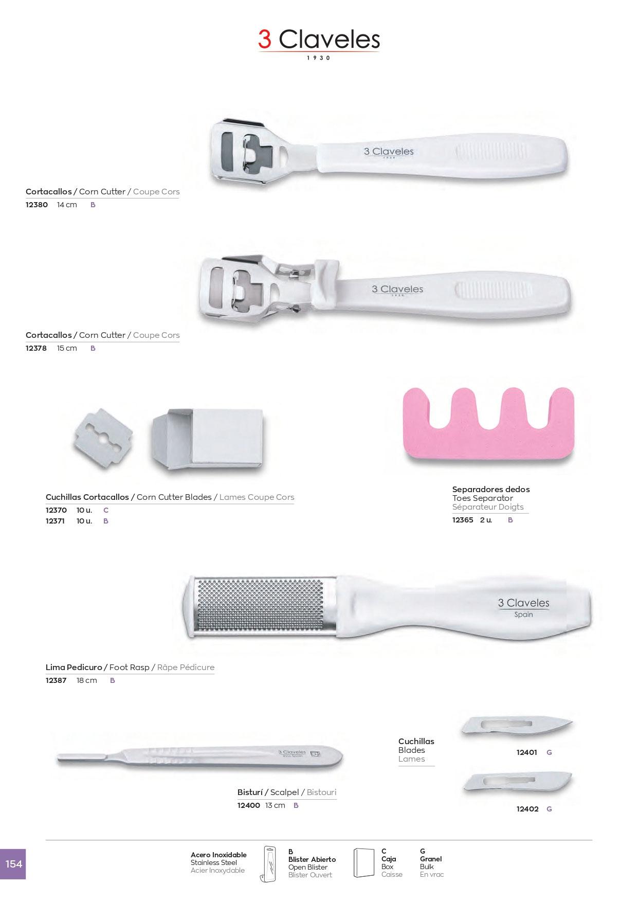 Cortacallos 15 cm con bisagra y mango blanco 3 Claveles en blíste...