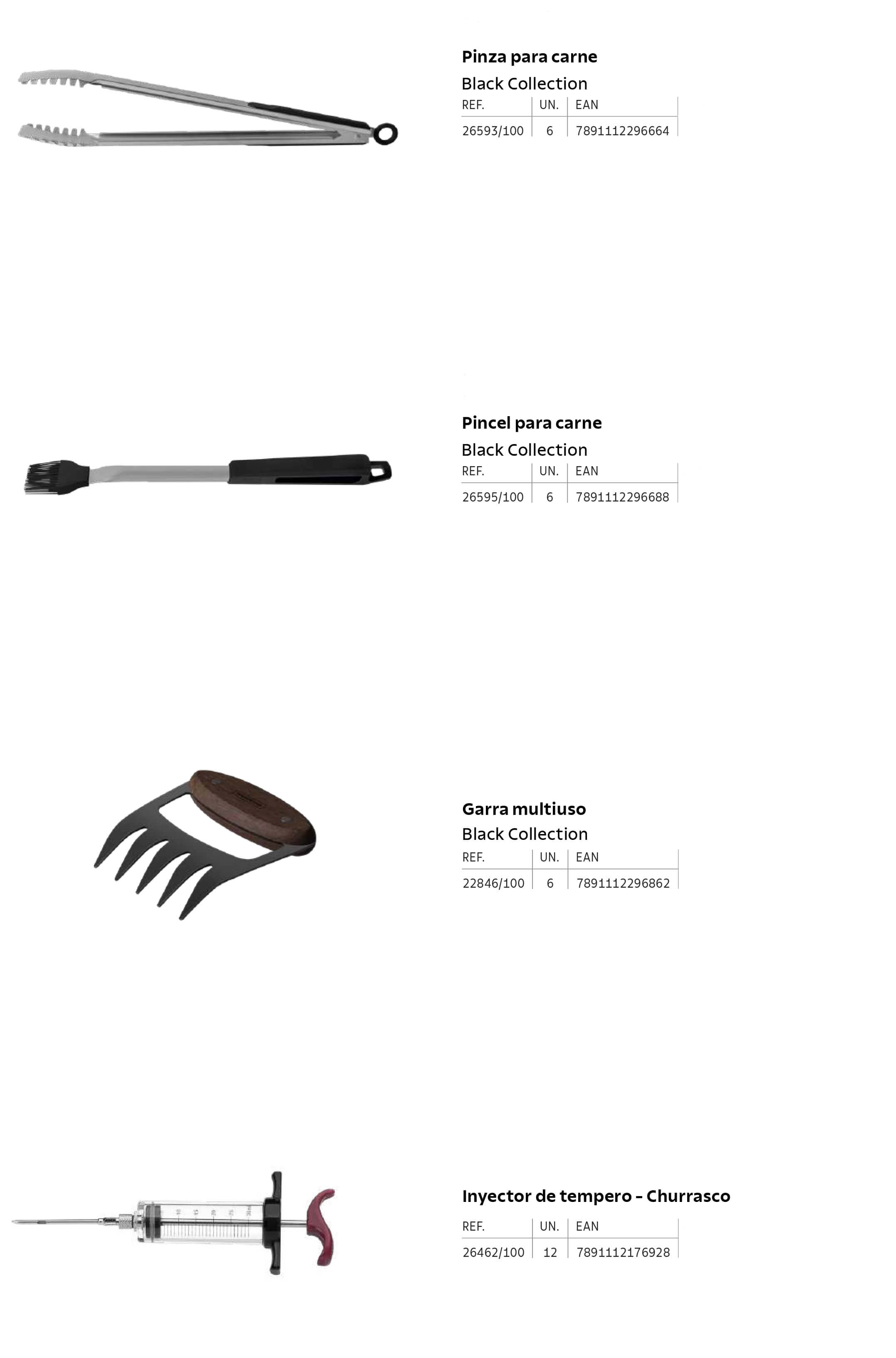 Colección de diferentes utensilios para tu cocina, entre ellos, unas pinzas para carne, un pincel para la carne, una garra multiusos y un inyector de témpero. Con estos utensilios podrás disfrutar de una experiencia más que satisfactoria en tu barbacoa o en tu cocina.