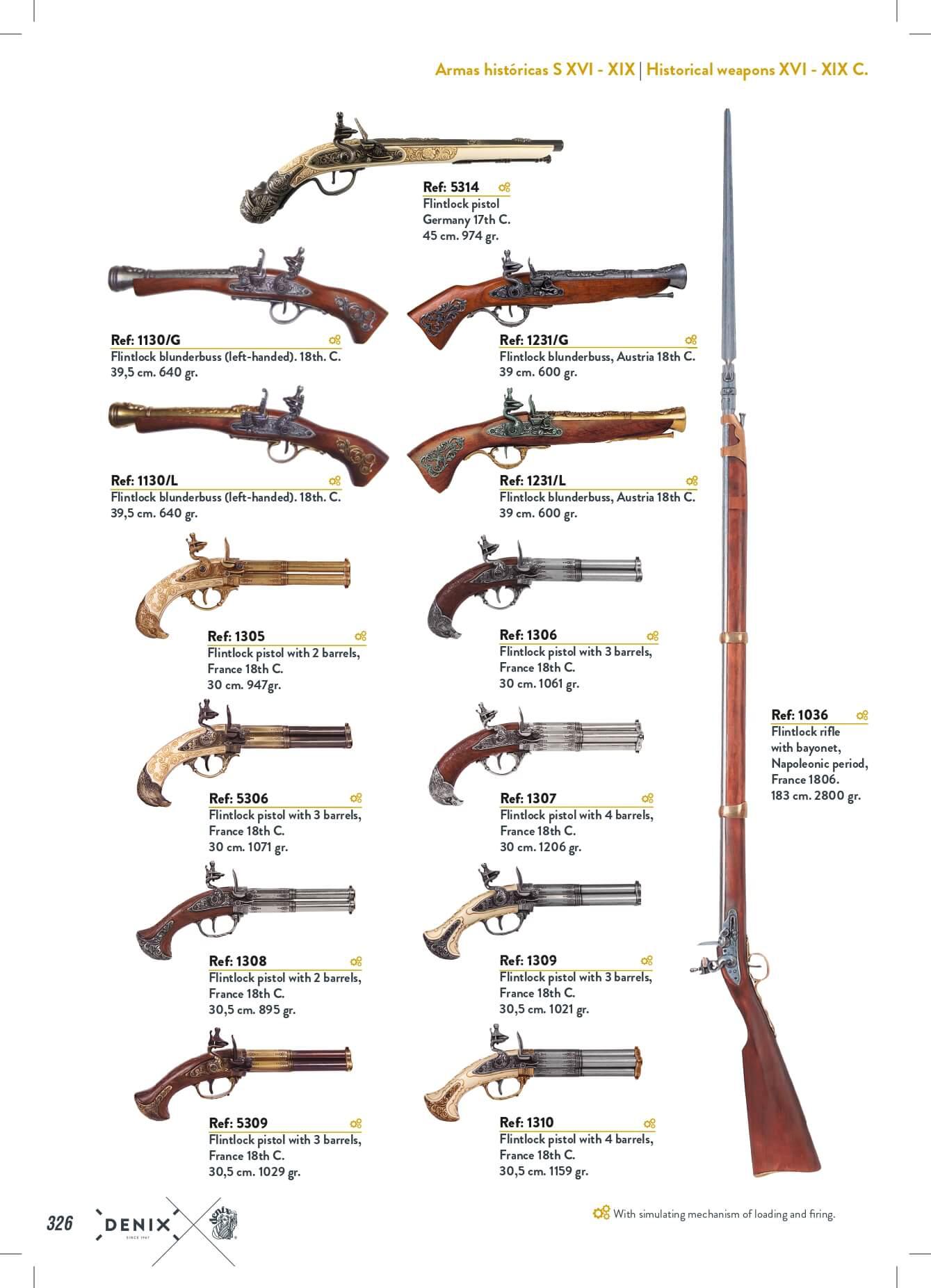 - 1130/L: Trabuco de chispa, (zurda) 39,5 cm, 640 gr.