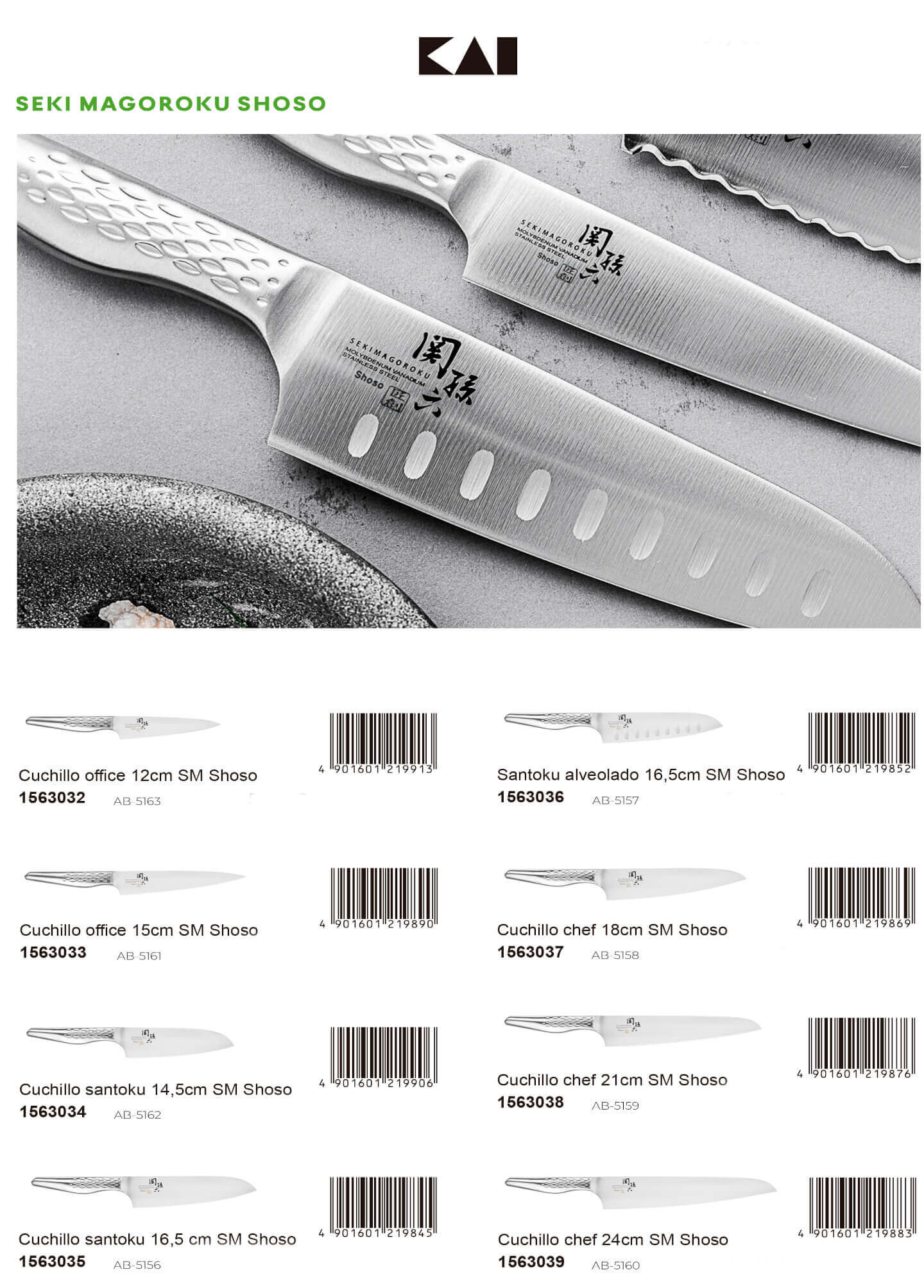 La colección Seki Magoroku Shoso se distingue de otras colecciones KAI por su diseño imponente, moderno e innovador. Cuchillos japoneses únicos con mango ergonómico antideslizante de acero inoxidable.