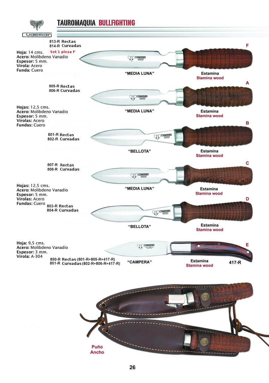 Puntillas, hoja de 12mm, acero 440, espesor 5mm, virola de acero, funda de cuero.