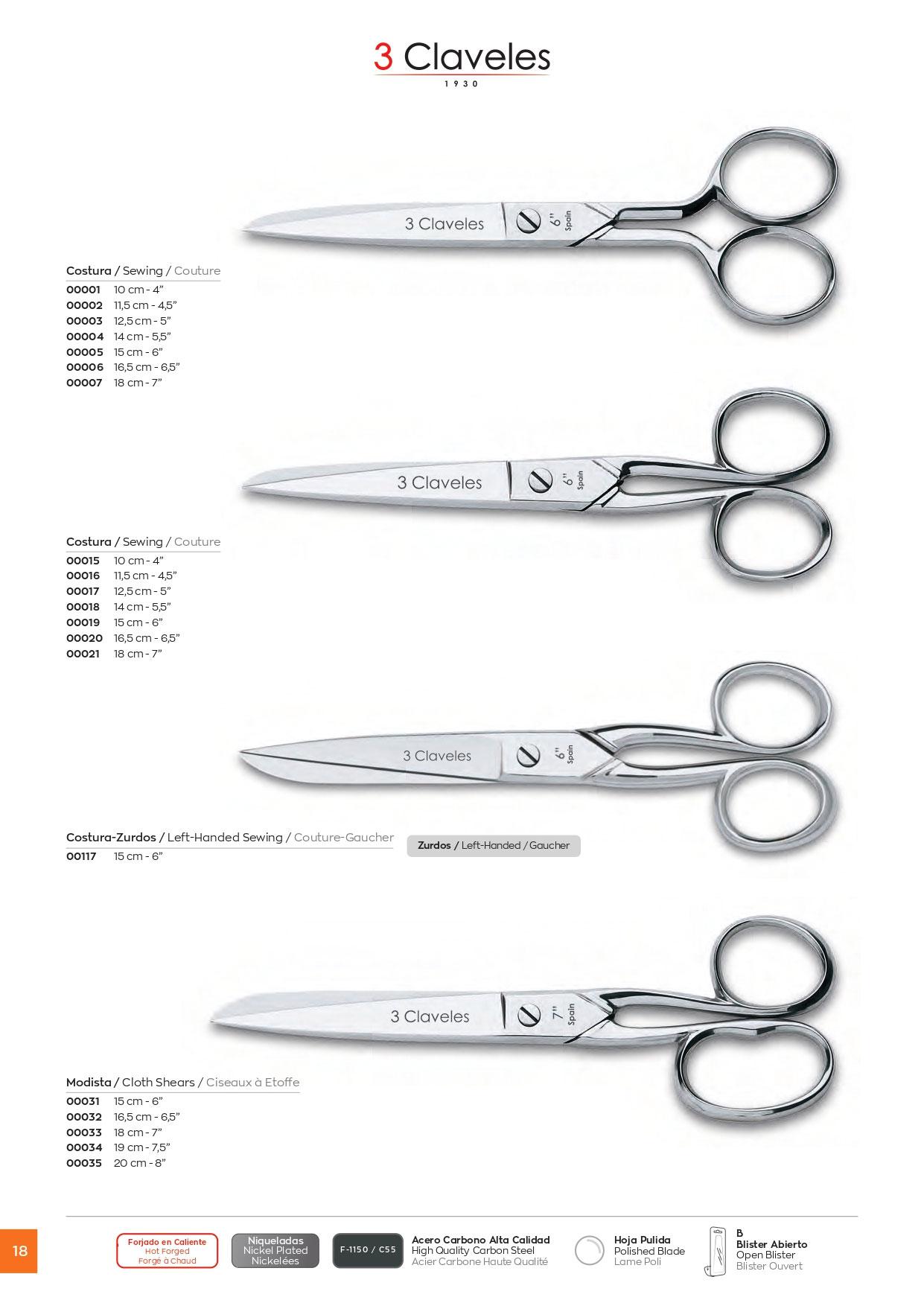 Tijeras de costura 150 mm acero carbono 3 Claveles