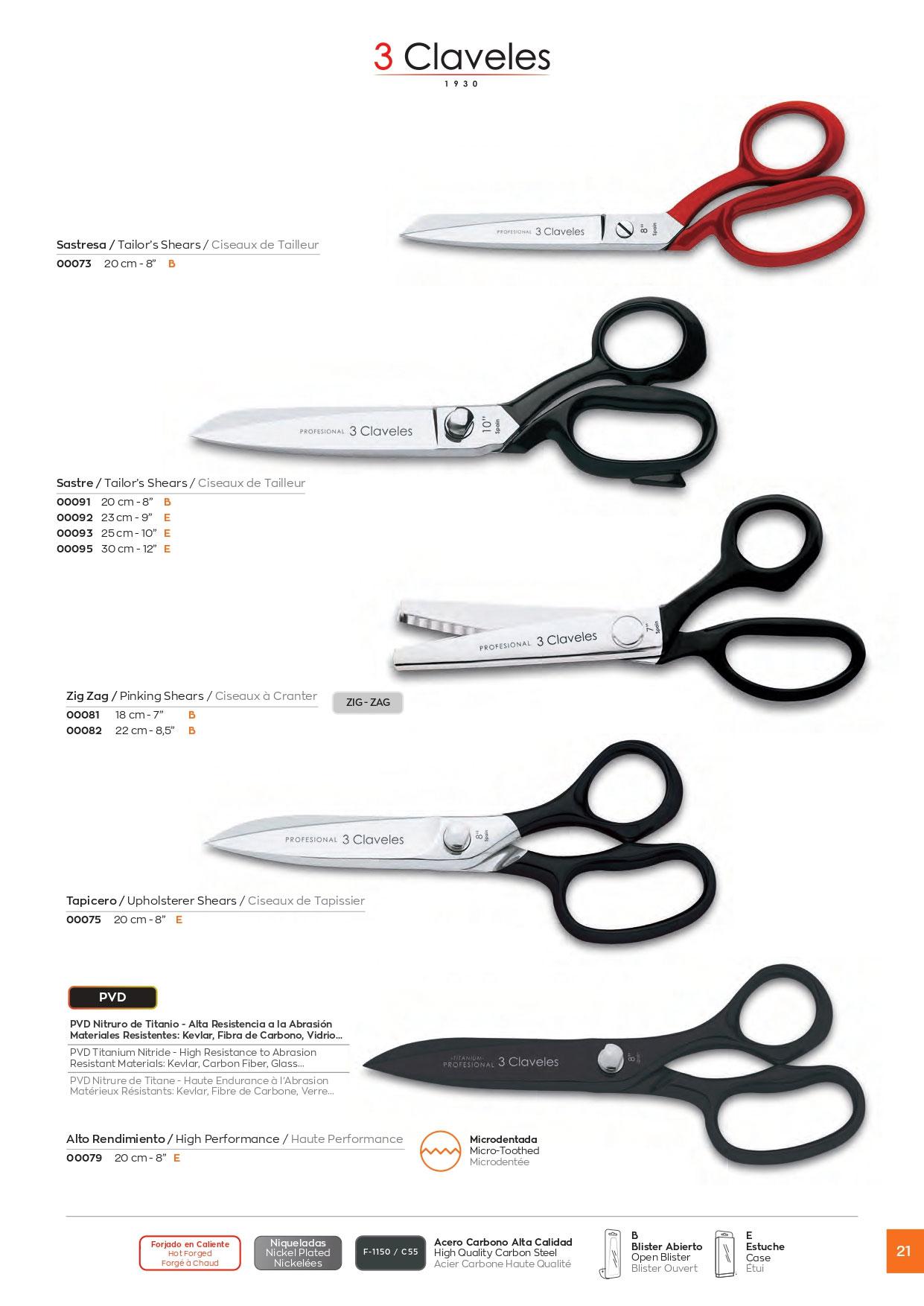 Tijera zig zag de 22 cm forjada en caliente con mango esmaltado n...